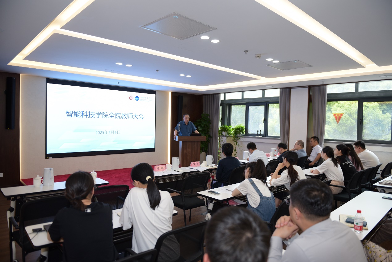 7月9日下午,智能科技学院召开2025年暑期教师大会,顾敏院士、校党委副书记贺莉邀出席会议并讲话,学校财务处副处长曹婧、招投标办主任赵树枫应邀作专题辅导报告,学院全体教师参加会议。会议由学院党总支书记夏小华主持。