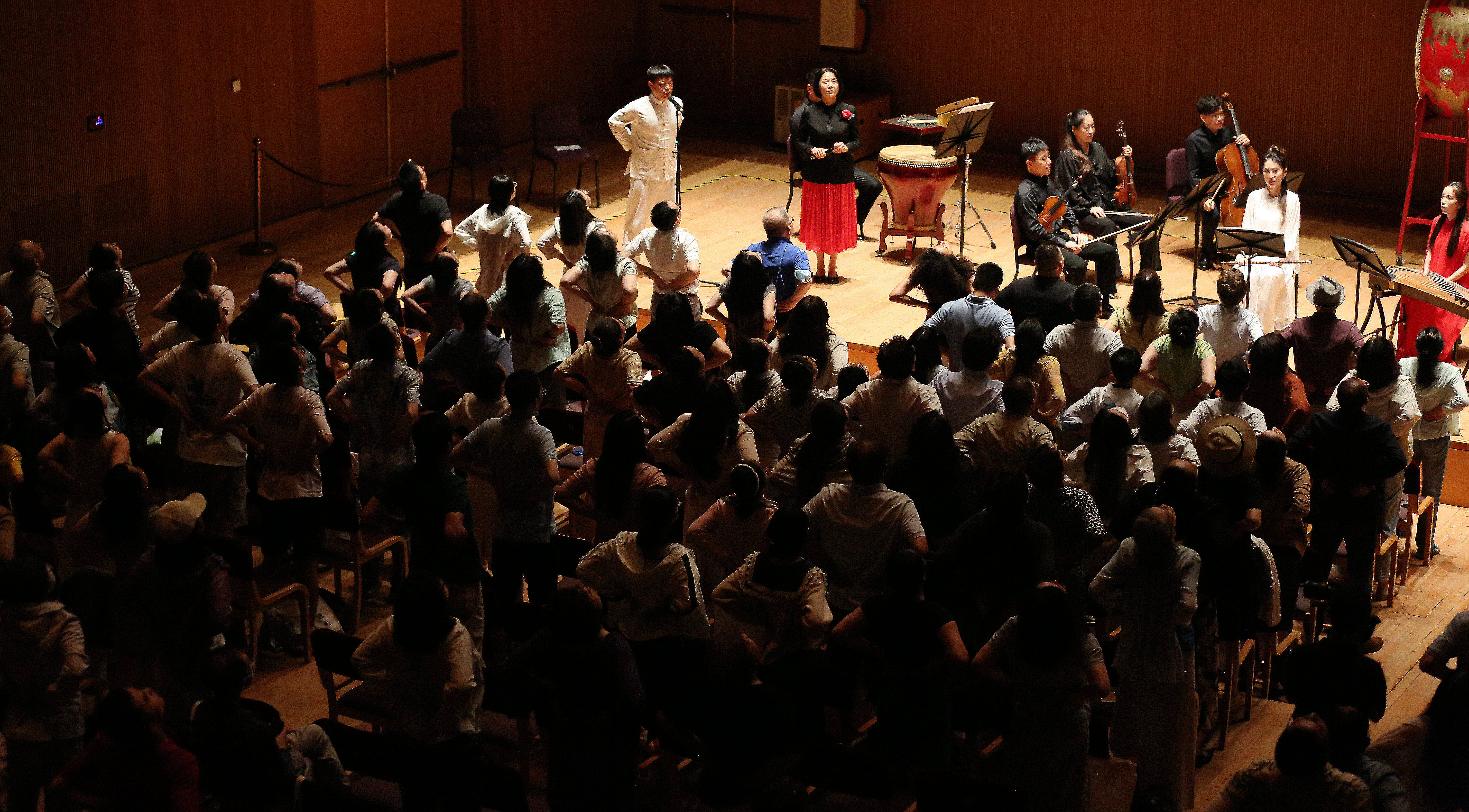 同时,在音乐会现场,学生团队协助徐海朋副教授完成了导引法的现场演示与互动体验环节,引导观众跟随音乐的律动进行吐纳,将身体的气韵与五音的节奏相互呼应,让观众在音乐与导引的双重滋养下,感受身心的和谐与平衡。