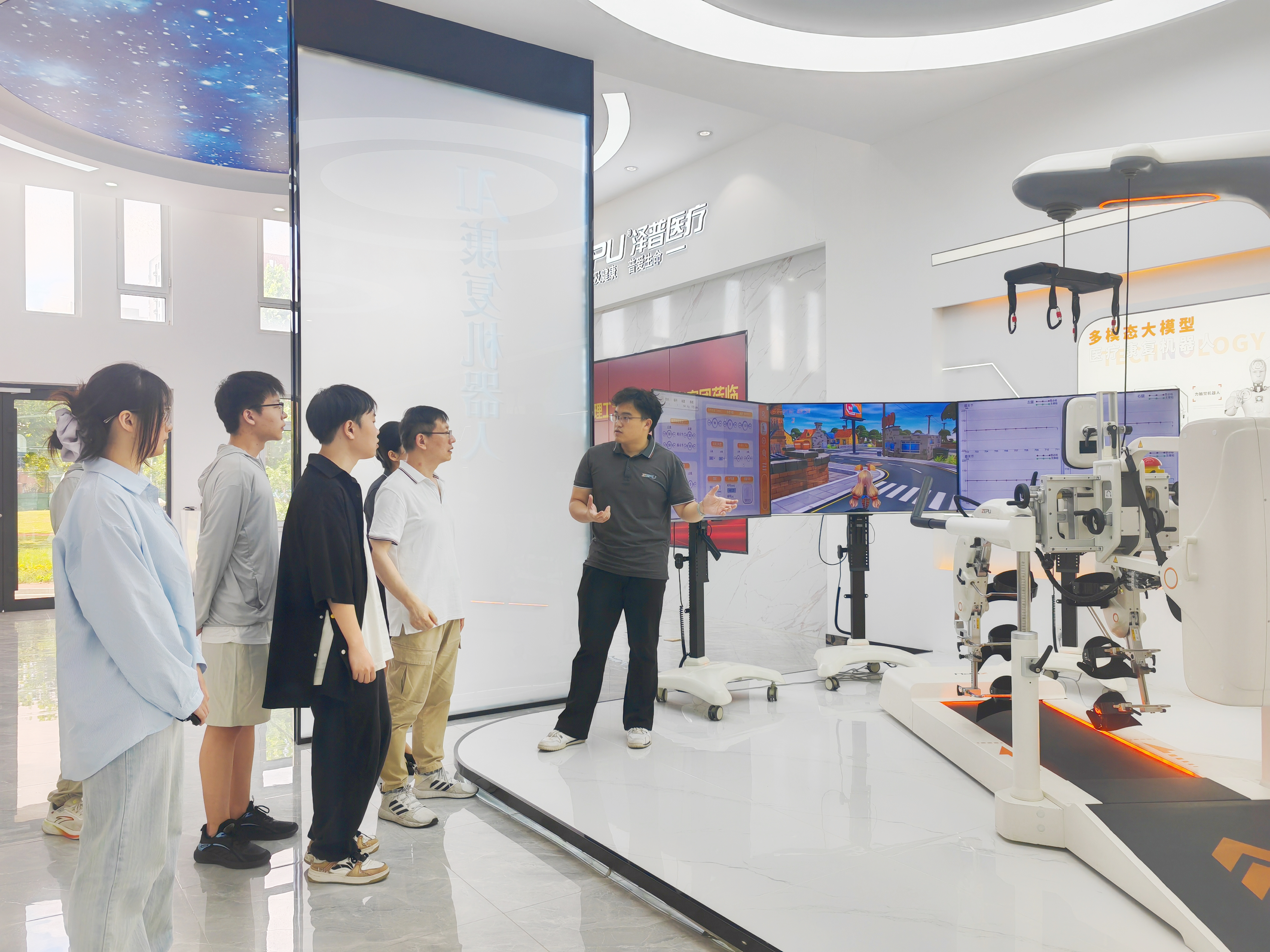 走进智能康复设备车间,机械臂精准抓取零件的嗡鸣声扑面而来,一台下肢康复机器人正“托举”着模拟人体进行步态训练,屏幕上跳动的步态数据正通过算法生成个性化训练方案……在山东泽普医疗科技有限公司,健康学院“山海‘械’逅,‘医’路向‘东’——山东省医疗器械产业高质量发展调研”实践团队师生了解到,“智能步态训练系统”相关专利已实现成果转化,累计帮助上万名患者重建行走能力。