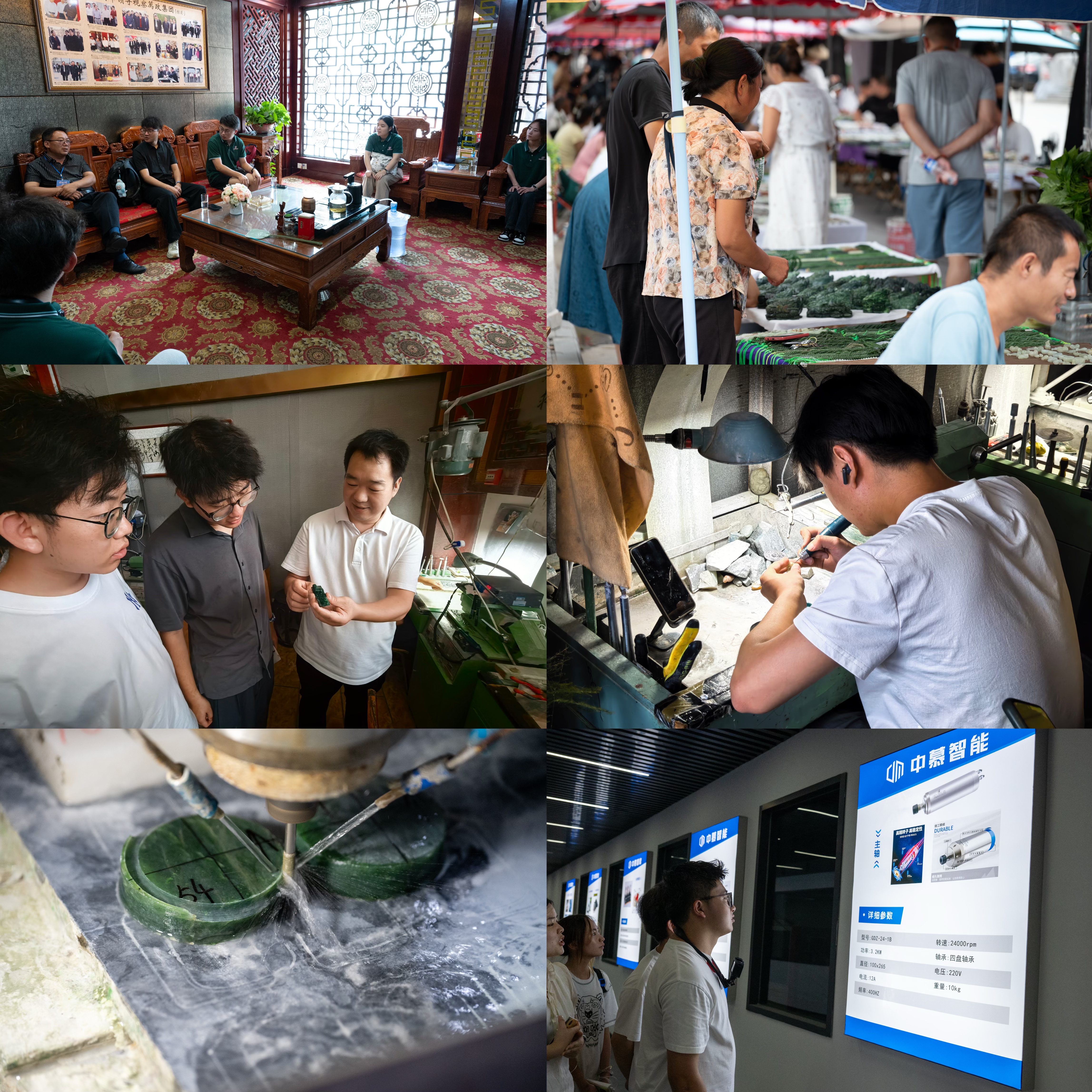 玉是如何从一块儿灰溜溜、脏兮兮的石头摇身转变为细腻油润之物,然后走进中国千万家的?国际玉城市场负责人叶德军介绍到:“南阳玉石产业链已相对完善,从上游的玉石开采、原料交易,到中游的设计加工,再到下游的成品销售,现已形成了一个完整的产业生态。”团队成员探访中国手工玉雕艺术大师姜宏彪,探寻“老手艺人”的匠心,也从中慕智能装备有限公司的车间里学习新型高端机械加工设备如何代替手工完成玉的批量化生产。从玉器市场摊位里小而精的玉石产品,到中国玉雕大师创意园里玉的妙笔生花,精益求精;从石佛寺清晨的线下市场门庭若市,到梧桐树产业园电商直播间里的“一二三上链接!”梧桐树新经济产业园江经理介绍到:“这里曾经是废弃厂房,在我党的政策引领下,这里已变成了融合电商、文化等多产业的红色引擎。全国电商的玉大部分都从南阳发货,而他们都得进咱这进行验证。”栽下梧桐树,引得凤凰来,队员们寻着玉石的前世今生,拍照宣传,为玉石产业贡献自己的力量。