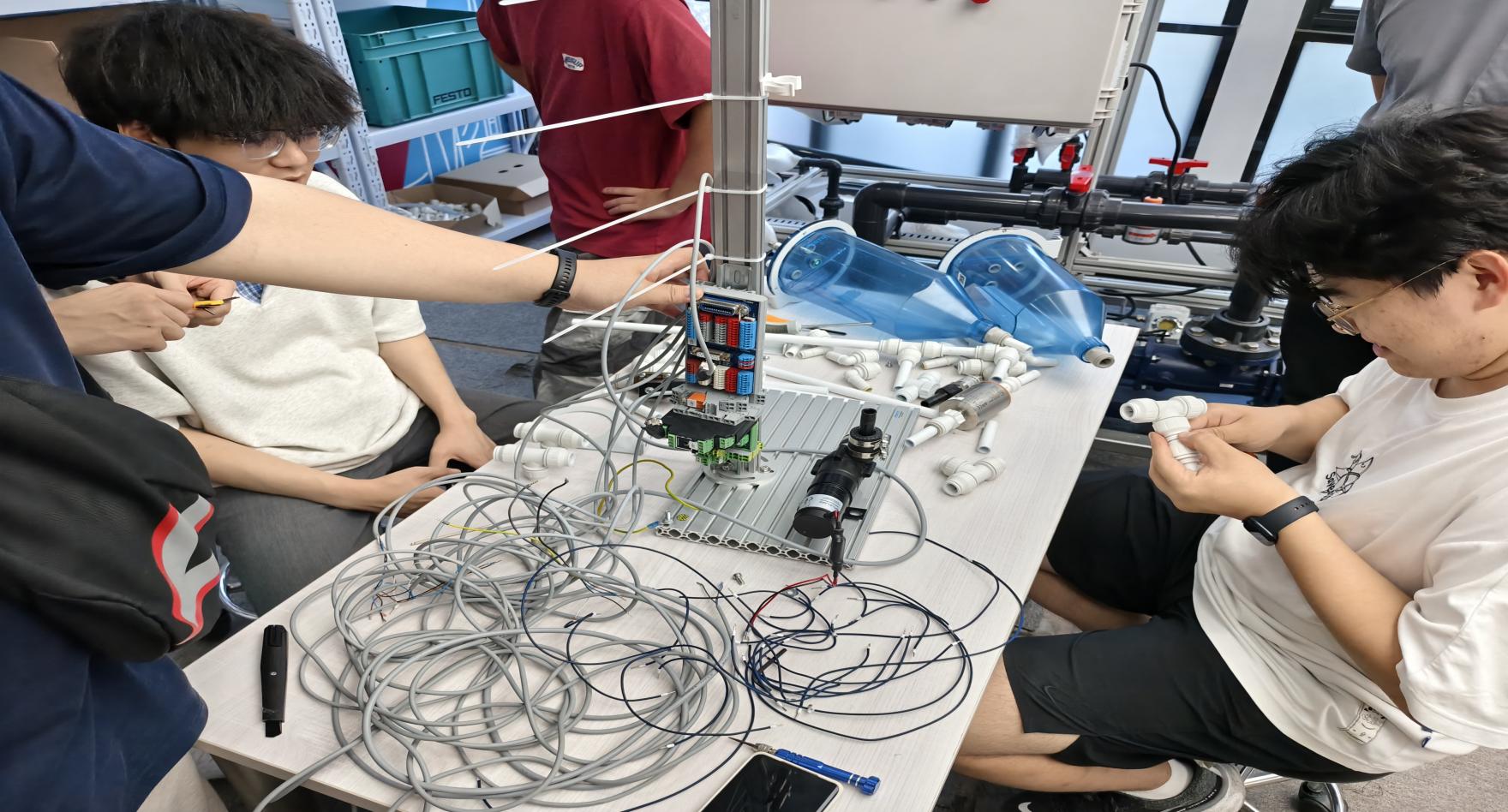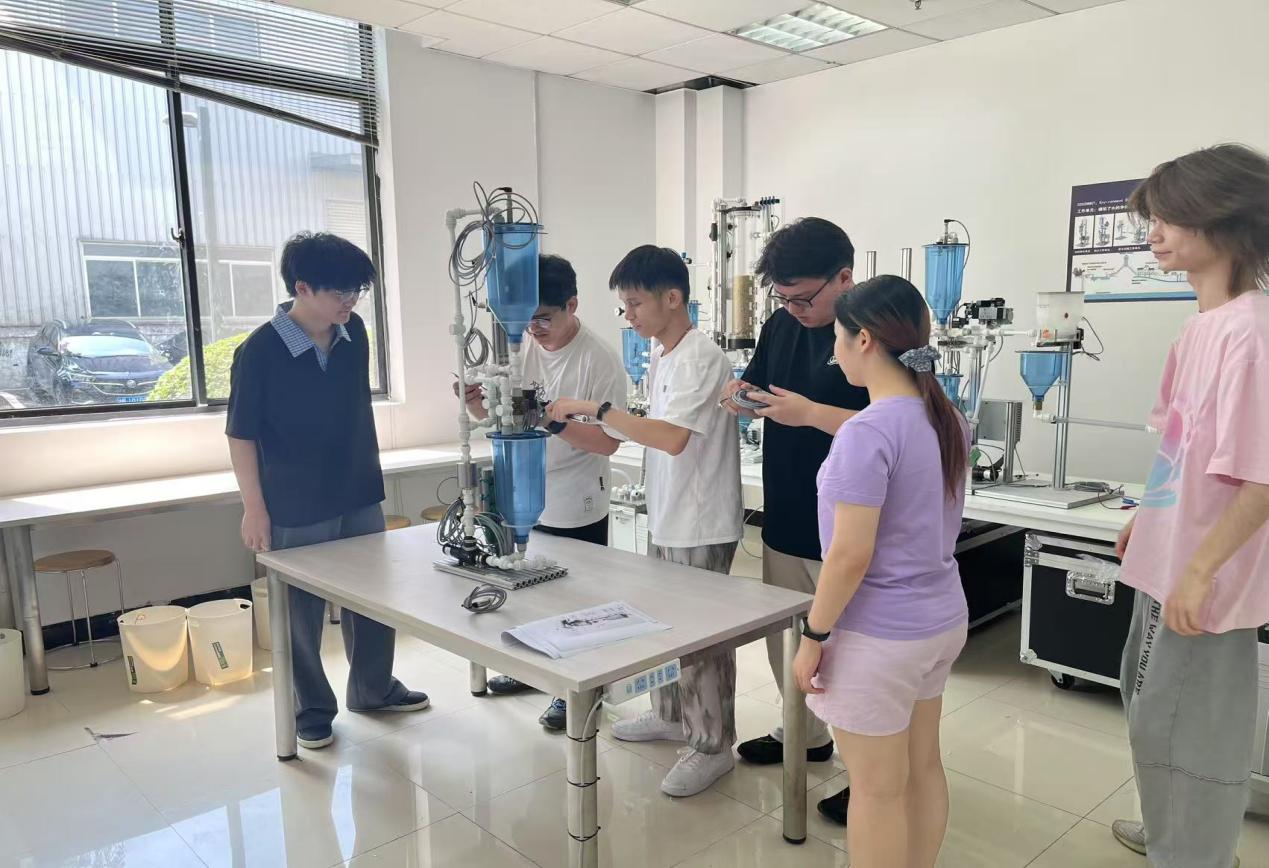 采访结束后,实践团成员们在工作人员的指导下,上手实践水处理装置,成功完成了水处理模拟装置的拆装操作。