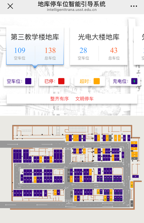 驾车驶入军工路校区南区国合楼,车库入口处的电子屏便实时亮起绿色数字——“剩余车位:56”“充电桩空位:6”的字样清晰醒目,像位热心的“向导”主动递出指引。每个车位上方的指示灯也跟着“说话”:绿灯亮处是待停空位,红灯则提示已占用;充电桩旁的标识更贴心,不仅标注着接口类型,还同步显示着实时充电进度,不用再绕着车库“找位”,也不必为“充电桩是否可用”悬心。“这套智慧引导系统的背后,是保卫处联合技术团队在暑期的抢工调试。从传感器的精准布设到数据后台的反复校准,工作人员顶着车库内的闷热,逐区测试信号稳定性,连指示灯的亮度、屏幕的刷新频率都试过多次——就为了让数据零延迟,让师生停车时多一分从容。”保卫处张欢老师介绍道。如今走进车库,少了往日“绕圈寻位”的匆忙,多了“按指引直达”的顺畅,这抹藏在地下的“智慧微光”,正悄悄把校园服务的暖意,融进师生出行的日常里。