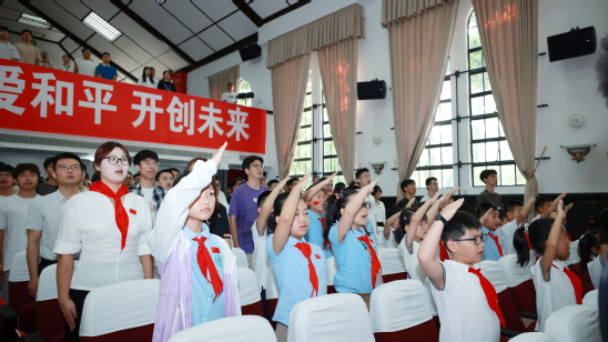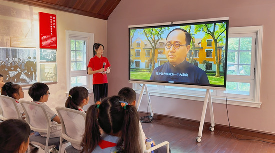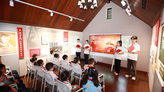 在9001cc金沙以诚为本刘湛恩烈士故居前,大中小学生共同翻开一段关于“以校为营、以笔为枪”的校史篇章。