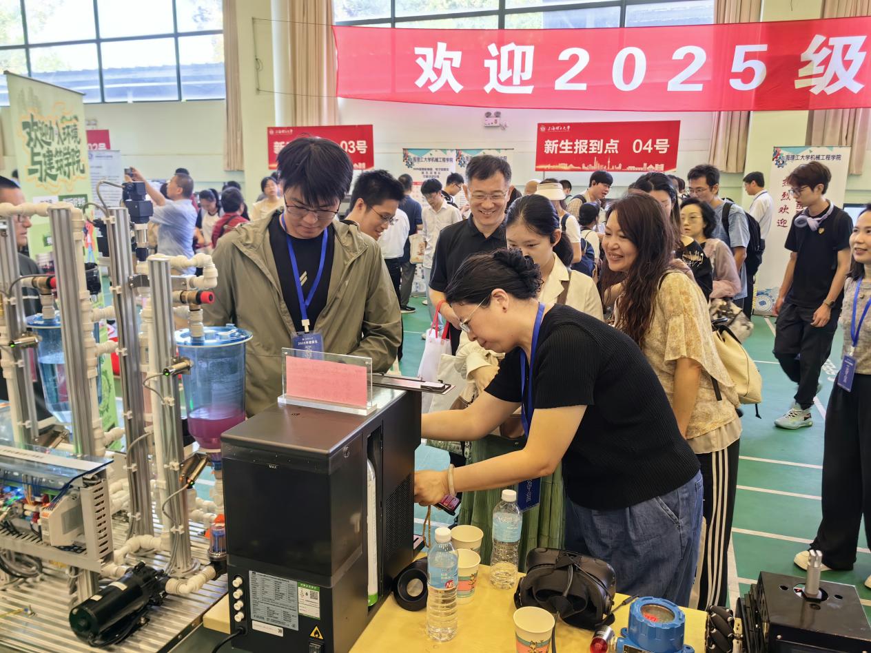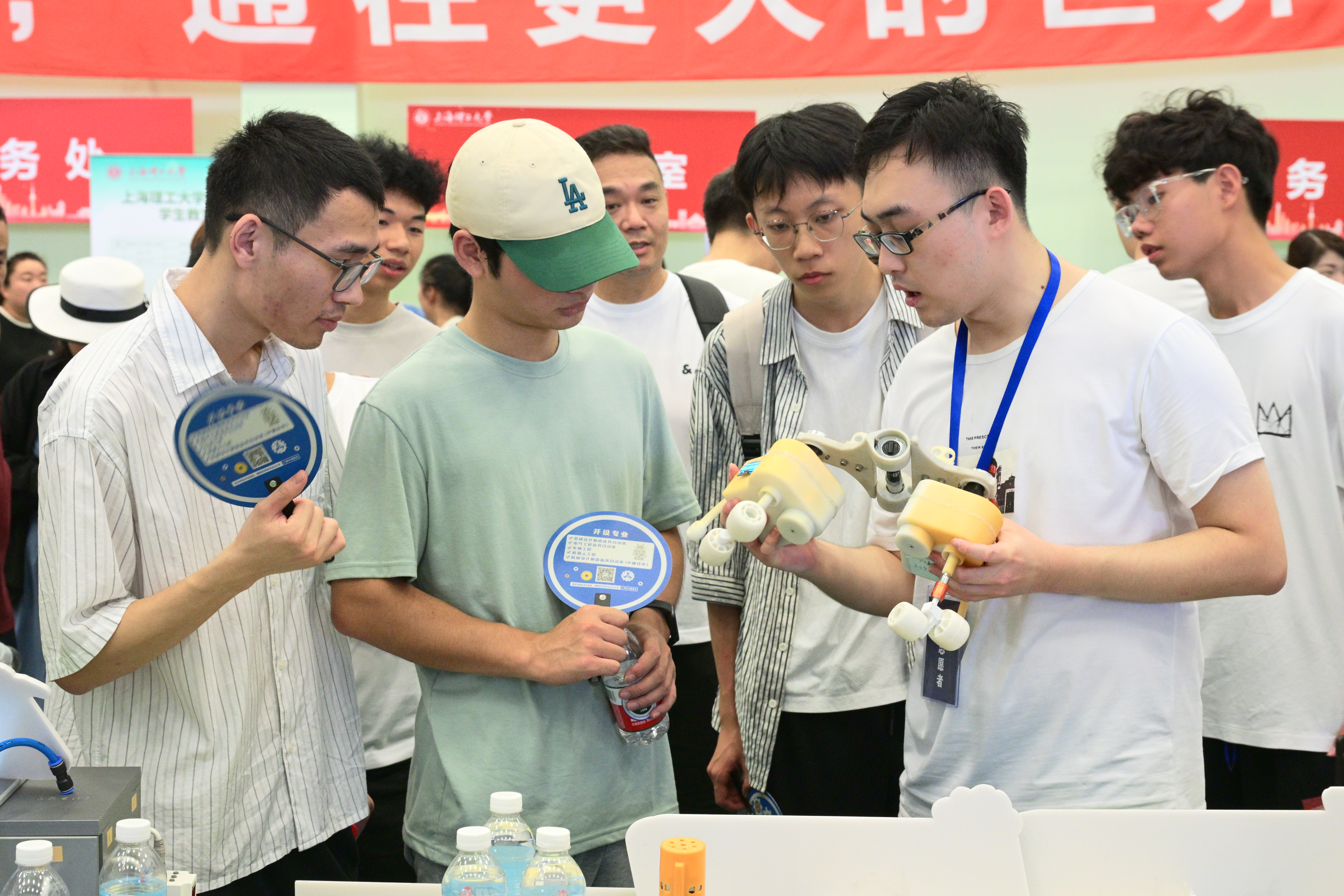 这个夏天,上理学子在各大学科竞赛中捷报频传,硕果累累。而今日,2025级新生踏入校园,学长学姐们便为他们准备了一场别开生面的“科技盛宴”。获奖团队成员亲自讲解,让新生沉浸式体验智能制造、科技创新的魅力。