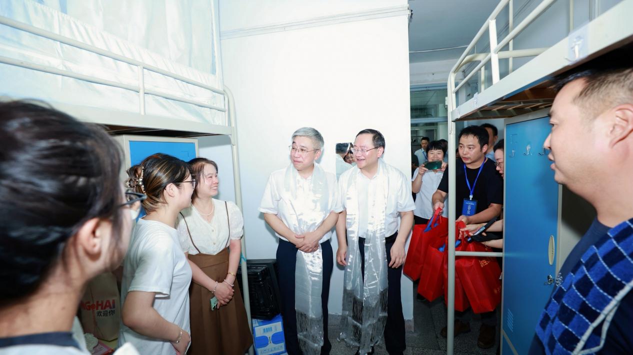 在基础学院A5宿舍,来自西藏拉萨的新生旦增次白同学向前来慰问的校领导敬献了哈达,他激动地说:“今天特别开心!校领导来宿舍看望我们,我献上洁白的哈达表达最真诚的敬意。这不仅是一种祝福,更让我深深感受到学校的关怀。我将带着这份温暖,继续加油!”