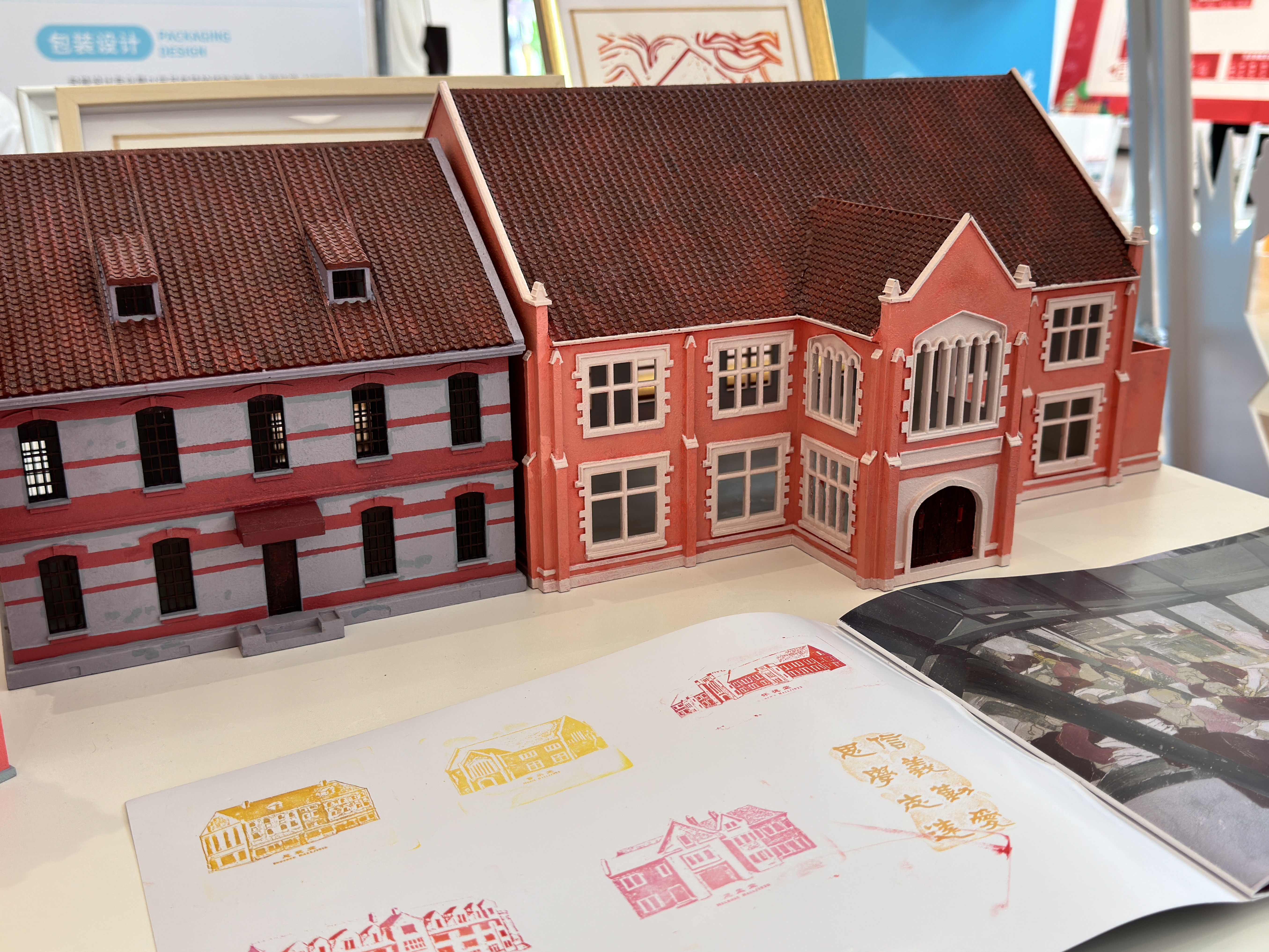 共赏一景,艺境筑梦。出版学院则把校园风景“搬”到现场。学长学姐们将课程版画、毕业设计中的建筑模型,以及将上理印象融于日常的卡套、折扇等文创作品一一呈现,把对校园的理解与热爱转化为可触摸的记忆。这场展览不仅迎接新生,更是一堂无声而深刻的专业认同课。