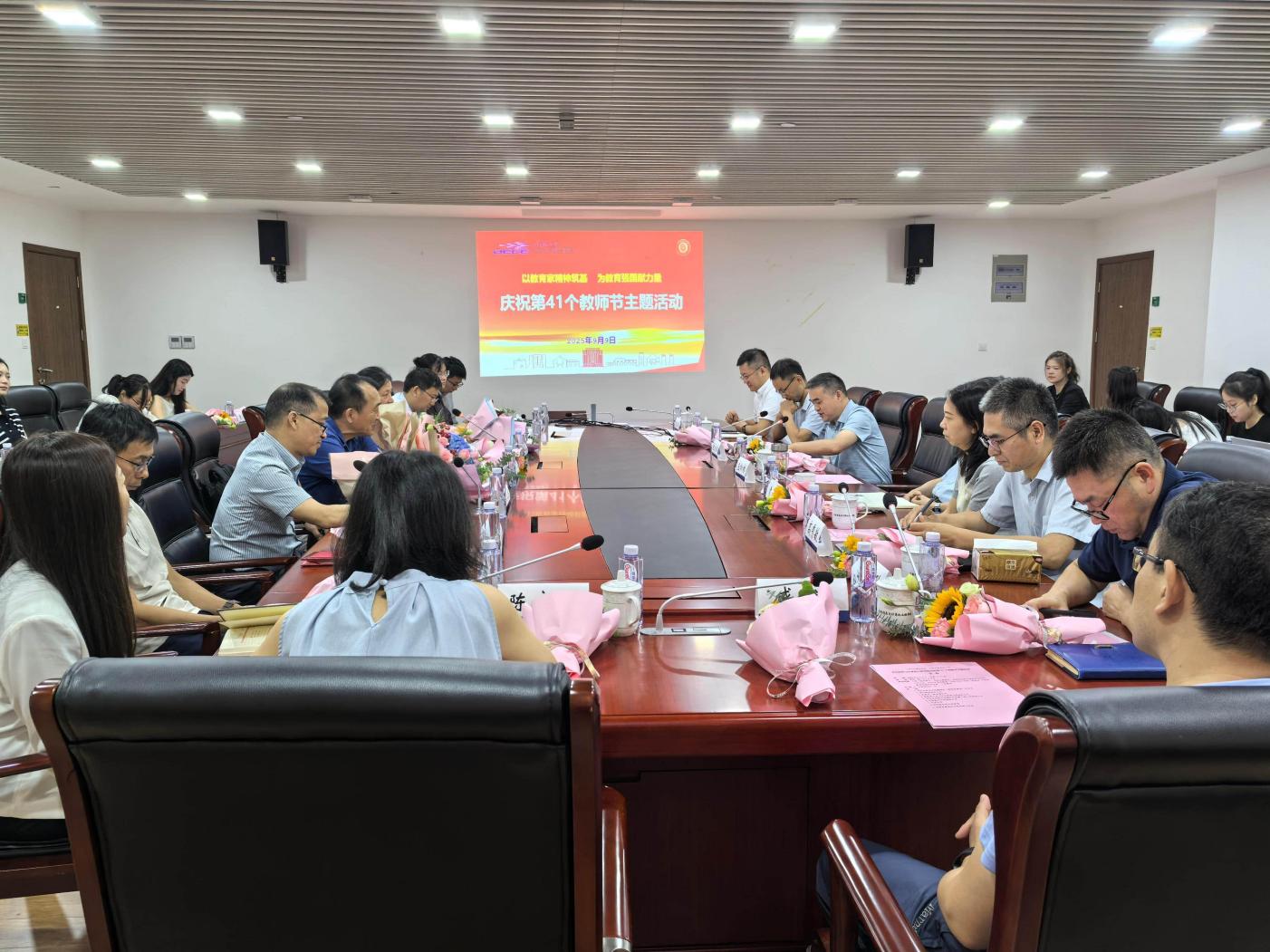 9月9日上午,光电学院以“以教育家精神筑基,为教育强国献力量”为主题,举办2025年教师节活动,热烈庆祝第41个教师节。中国工程院院士、学院名誉院长庄松林,学院党政领导班子成员、工会代表、2025年退休教师、2024-2025年新入职教师及学院2024年“优秀教师师德师风故事”入选教师参加活动。活动由副院长刘一主持。