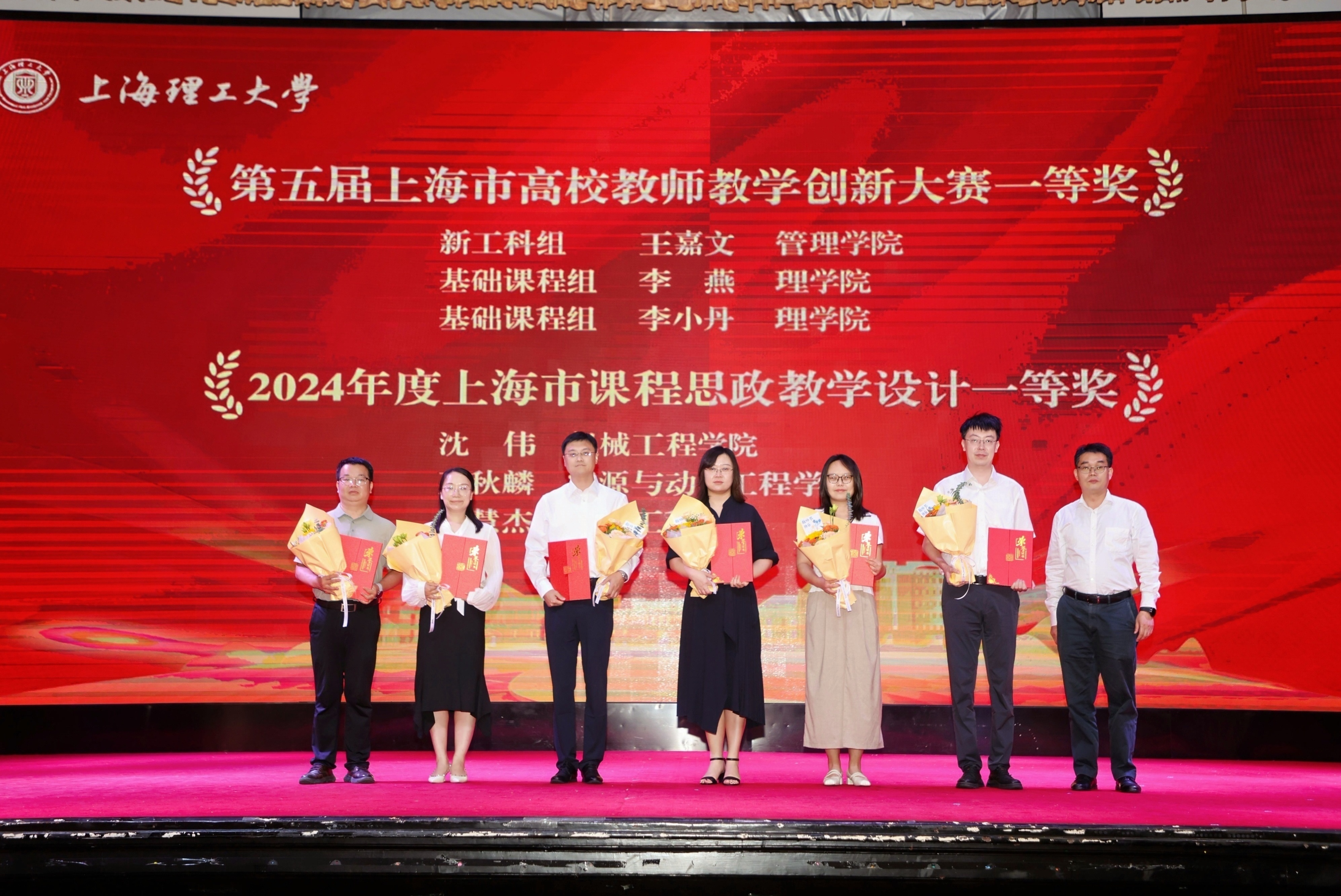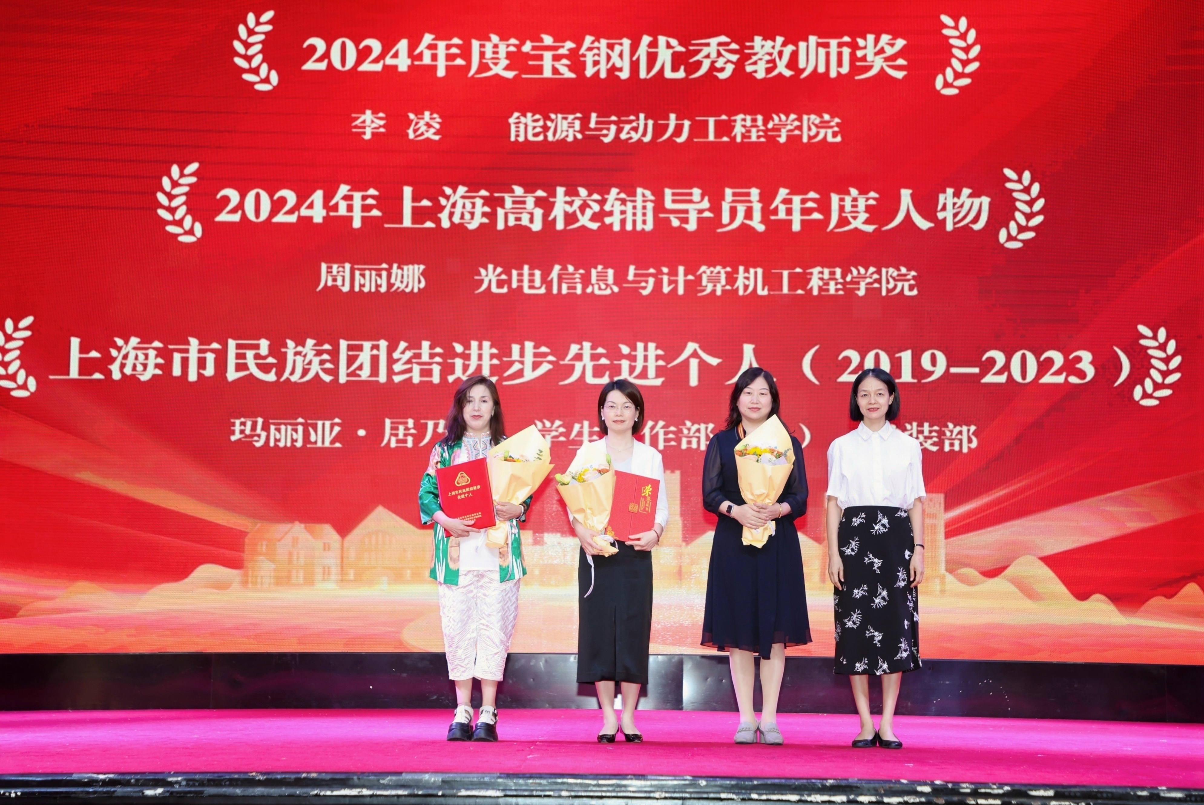 按照习近平总书记所提出的“培养德智体美劳全面发展的社会主义建设者和接班人”的教育的根本任务和要求,围绕五育融合、协同发力,会上对中国国际大学生创新大赛金奖指导教师、第十九届“挑战杯”大学生课外学术科技作品竞赛全国专项赛特等奖指导教师、上海市赛特等奖指导教师、第五届上海市高校教师教学创新大赛一等奖、2024年度上海市课程思政教学设计一等奖、2023年度上海市课程思政示范团队、2024年度宝钢优秀教师奖、2024年上海高校辅导员年度人物、全国第七届大学生艺术展演活动优秀组织奖等团队和教师进行了表彰和颁奖。