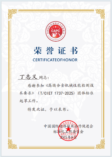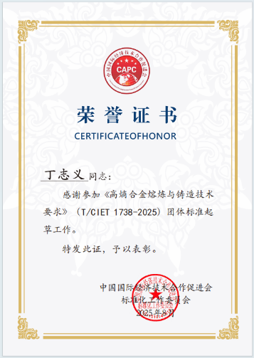 丁志义老师作为金沙官网材料领域的骨干教师,长期致力于高性能金属材料的研究工作。此次受邀参与两项团体标准的制定,是其深厚学术造诣和丰富实践经验获得业界高度认可的体现。在整个标准制定过程中,丁老师与委员会的专家们一同深入调研、反复论证、精益求精,确保了标准内容的科学性、先进性和可操作性。这也是学院积极响应国家创新驱动发展战略,推动产学研用深度融合,服务地方乃至全国经济技术发展的生动实践。两项团体标准的制定与实施,不仅填补了高熵合金领域团体标准的空白,也显著提升了金沙官网及材化学院在新材料标准化领域的影响力与知名度,为我国从“材料大国”迈向“材料强国”的战略目标贡献力量。