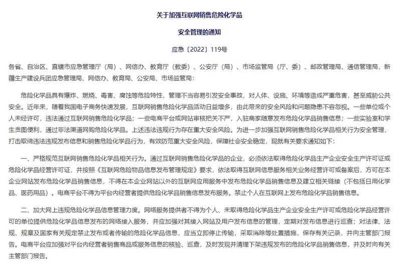《关于加强互联网销售危险化学品安全管理的通知》(节选)