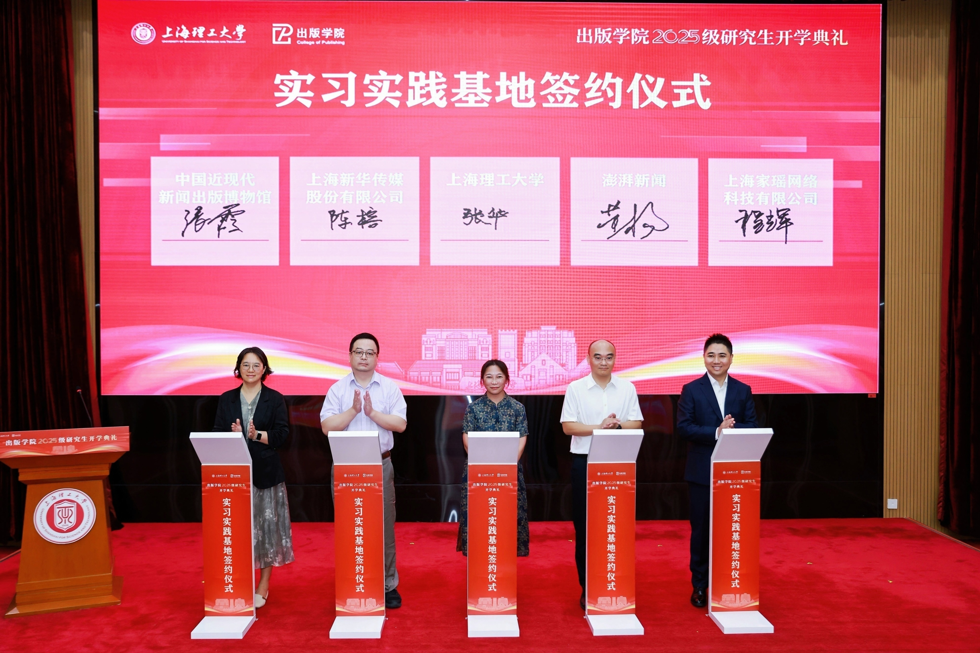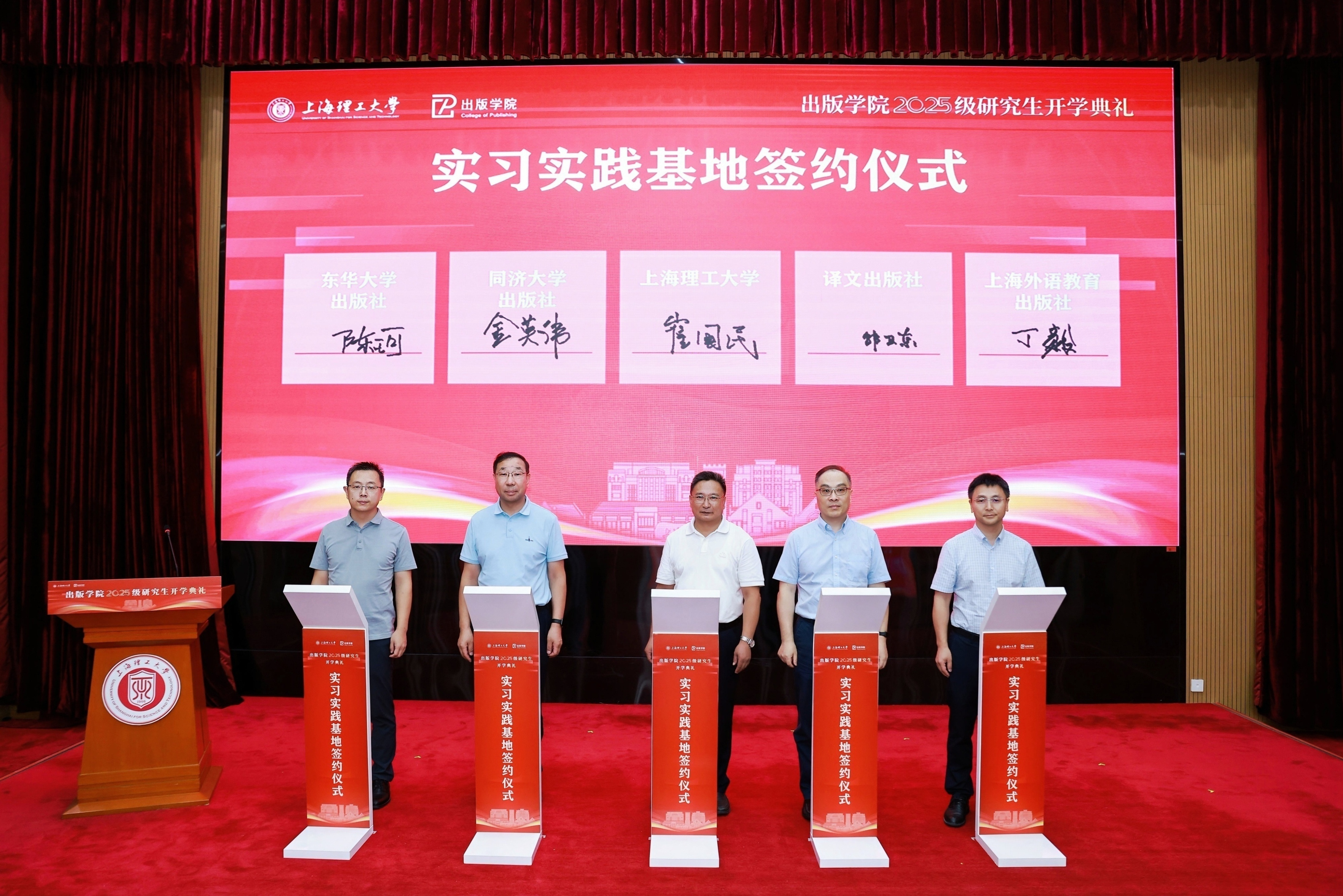 开学典礼上,学校与译文出版社、同济大学出版社、上海外语教育出版社、东华大学出版社、澎湃新闻等8家企事业单位签订人才联合培养协议。
