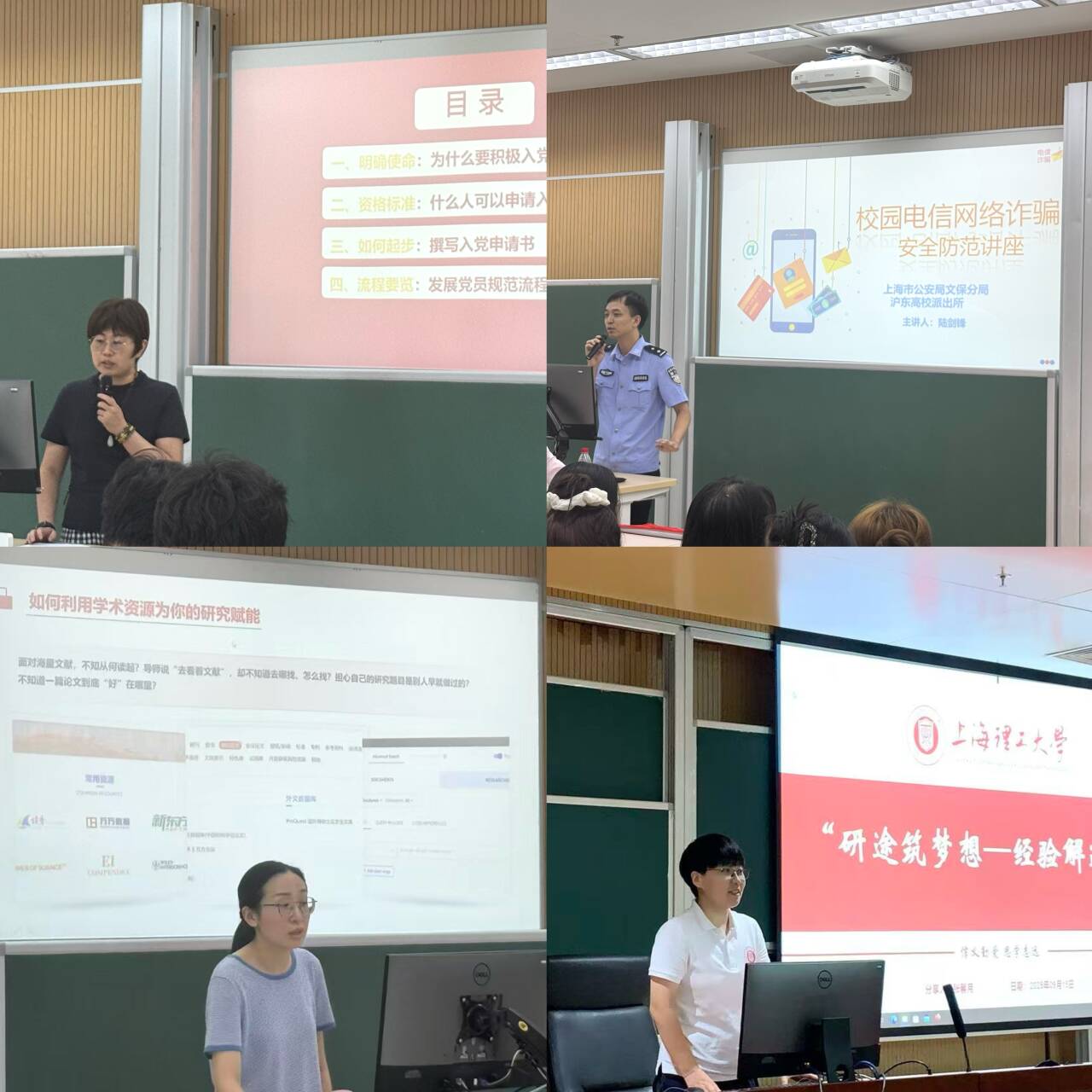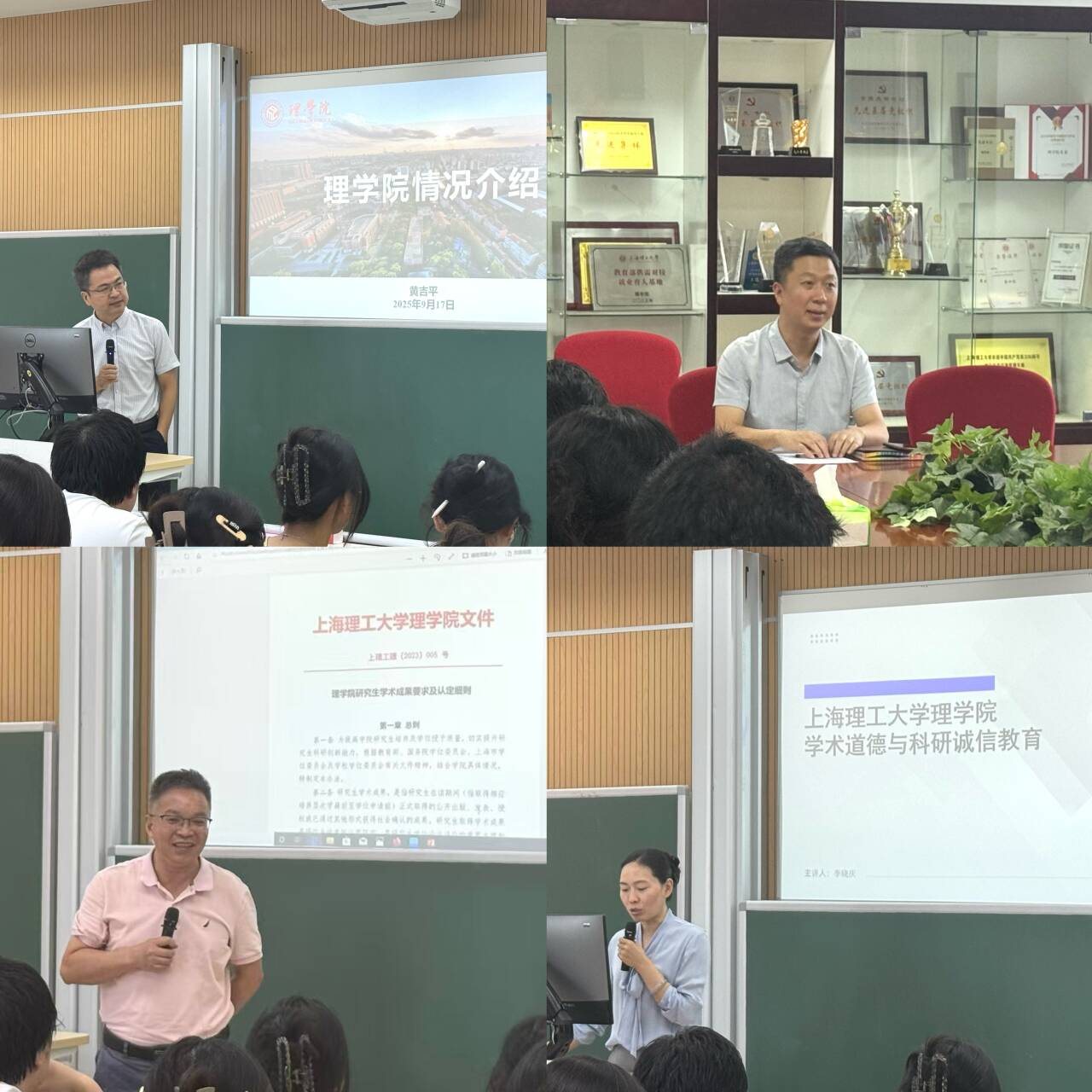 聚焦学术能力培养,学院通过“传帮带”与学术规范教育搭建科研成长体系。在科研启航环节,复旦博士张馨月、青年导师刘帅先后开展经验分享,从“理科之星”的科研心路到青年学者的成长路径,为新生解锁“文献检索—课题选择—成果转化”的科研密码,构成科研启蒙的双引擎;而在科学道德与学风建设主题活动中,院长黄吉平从“团队协作、学研结合、导师责任、学术诚信” 四个维度构建科研认知框架,章国庆教授提出“课程学好、论文写好、工作找好”的“三好”成长路径,李晓庆老师则以学术不端案例为警示,筑牢新生的学术伦理底线,多维度夯实研究生的科研根基。