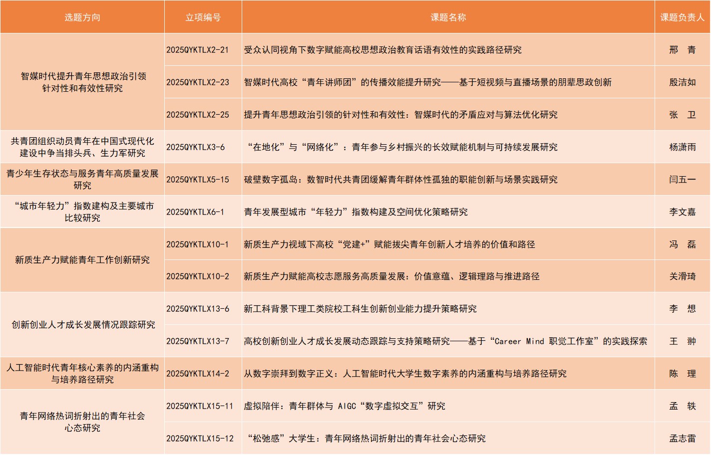 9001cc金沙以诚为本2025年度上海青年工作研究课题立项名单