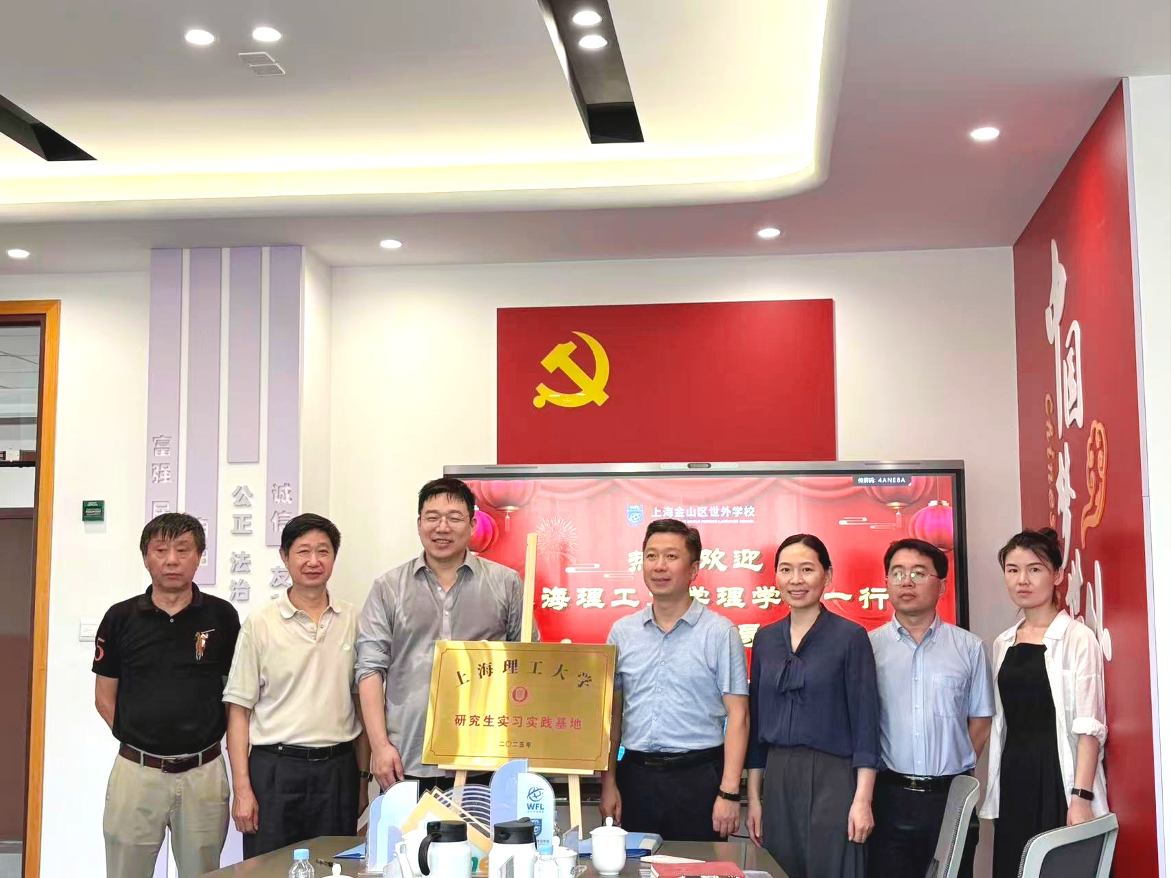 理学院师生一行先抵达金山世外学校,参观了学校的校园环境以及小学、初中、高中人才培养方面的实践特色和育人成果。随后,双方围绕办学特色、学科优势及人才培养目标展开深入交流。 金山世外校长赵毅详细介绍了学校在基础教育领域的教育理念、学生规模、特色实践和用人需求。孟宝全分享了学校历史、发展愿景、教育综改以及理学院近年来在数学、物理学科人才培养及毕业生就业方面的情况。随后,双方正式签署《研究生实践基地建设协议》,明确以“资源共享、优势互补、共同发展”为原则,推进大中小教育一体化建设。金山世外学校表示将为理学院研究生提供参观学习、教育研究、岗前实习、随堂听课等实践平台,在就业合作上形成联动。