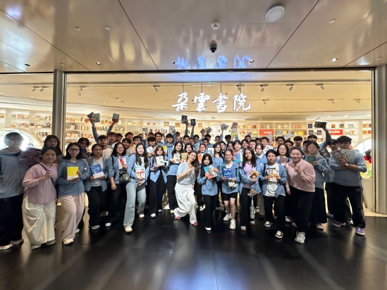 随后,同学们走进位于大厦52层的朵云书院,在“云端书房”中感受别样的阅读氛围。朵云书院将海派文化底蕴与现代空间美学相融合,营造出浓厚的知识气息与艺术氛围。同学们在此静心阅读、交流感悟,进一步理解了上海作为文化大都市的包容与进步。