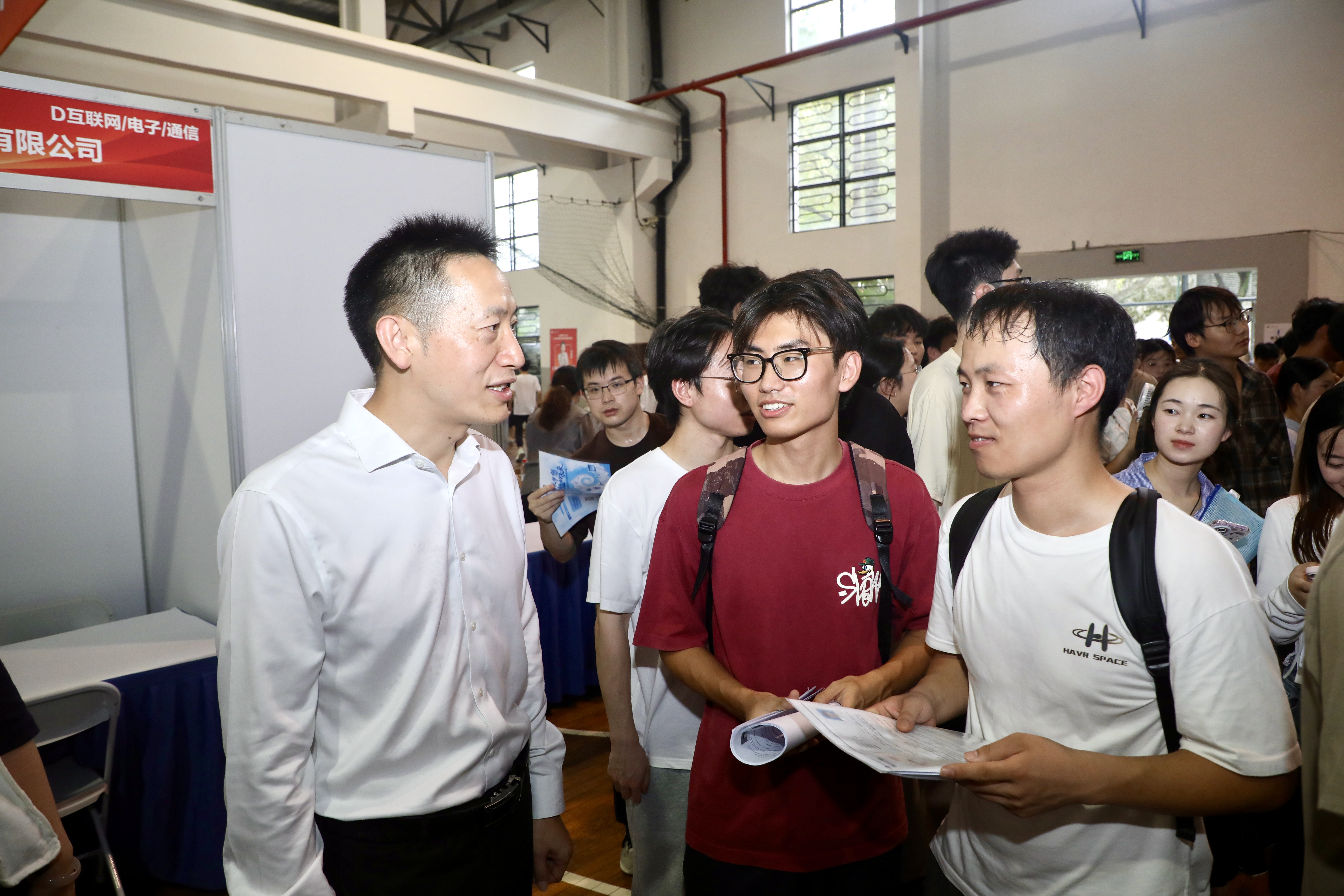 校党委副书记、副校长刘德强深入招聘会现场,与用人单位代表、应聘学生亲切交流。询问企业发展前景、岗位需求标准及人才培养方向,认真倾听和了解毕业生求职进展和心态,精准调研当前就业形势,强调要持续深化校企合作,完善就业服务体系,助力毕业生高质量充分就业。现场共累计7000余名毕业生参会,毕业生手持精心准备的简历,踊跃与企业代表沟通,围绕岗位职责、薪酬福利、职业发展路径等关键问题积极咨询与应聘。