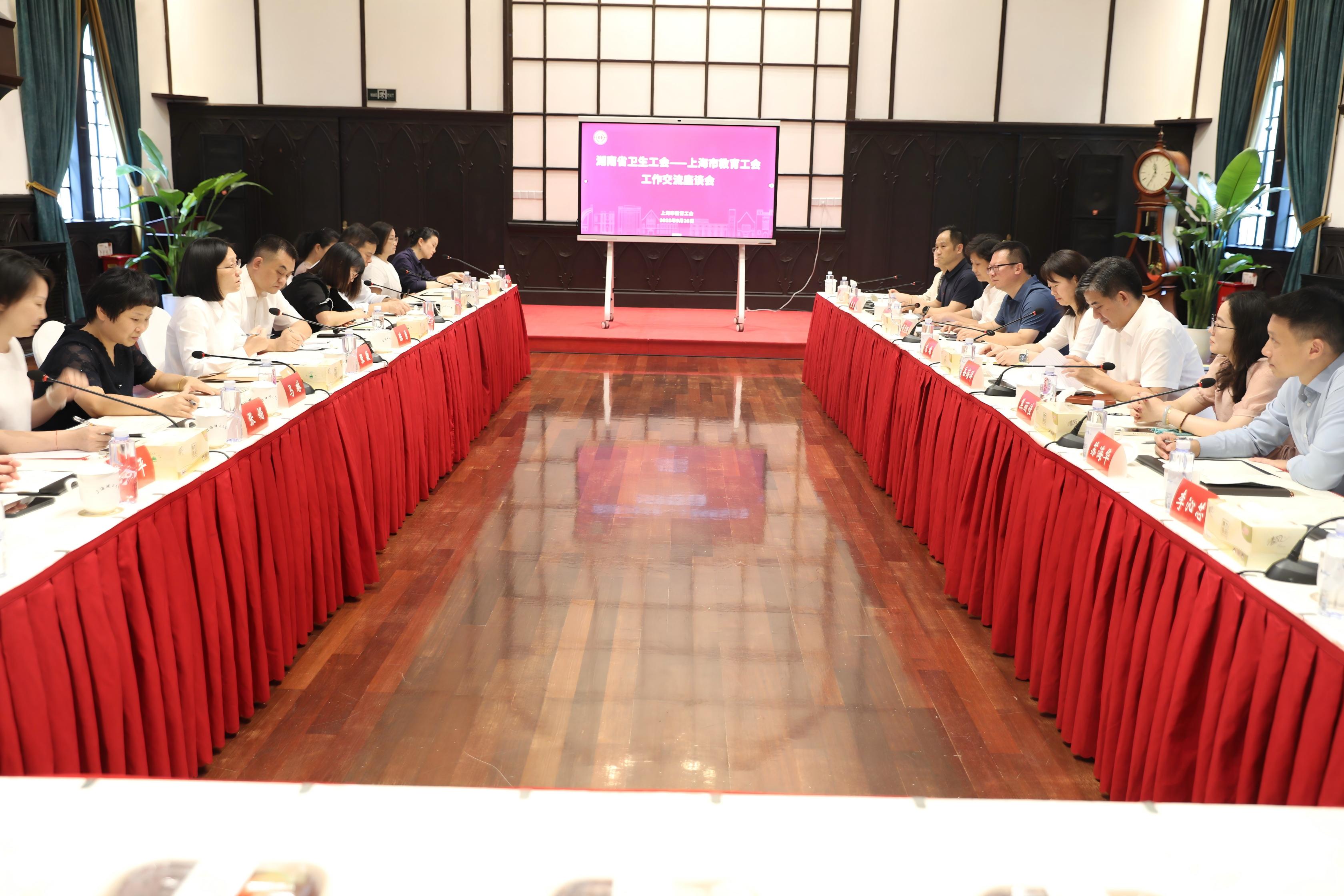9月26日上午,湖南省卫生工会主任张敏率队到访9001cc金沙以诚为本,围绕“体质与健康促进”主题开展交流研讨。活动在学校军工路校区大礼堂二楼会议室举行,上海市教育工会常务副主席朱姝主持会议,9001cc金沙以诚为本副校长岳海洋,上海电力大学工会常务副主席毛静涛,学校工会常务副主席黄志强、后勤管理处副处长苏海华、体育部副部长袁勇等相关部门负责人共同参会。