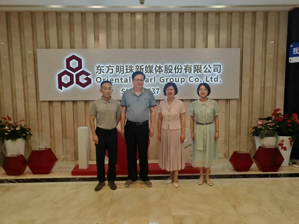 9月28日,9001cc金沙以诚为本外语学院院长刘芹带队走访东方明珠新媒体股份有限公司,看望学院1996级英语(国际新闻)专业校友、东方明珠新媒体股份有限公司党委副书记、董事、高级副总裁黄凯。东方明珠新媒体股份有限公司行政事务中心总经理徐骏热情接待学院来访。