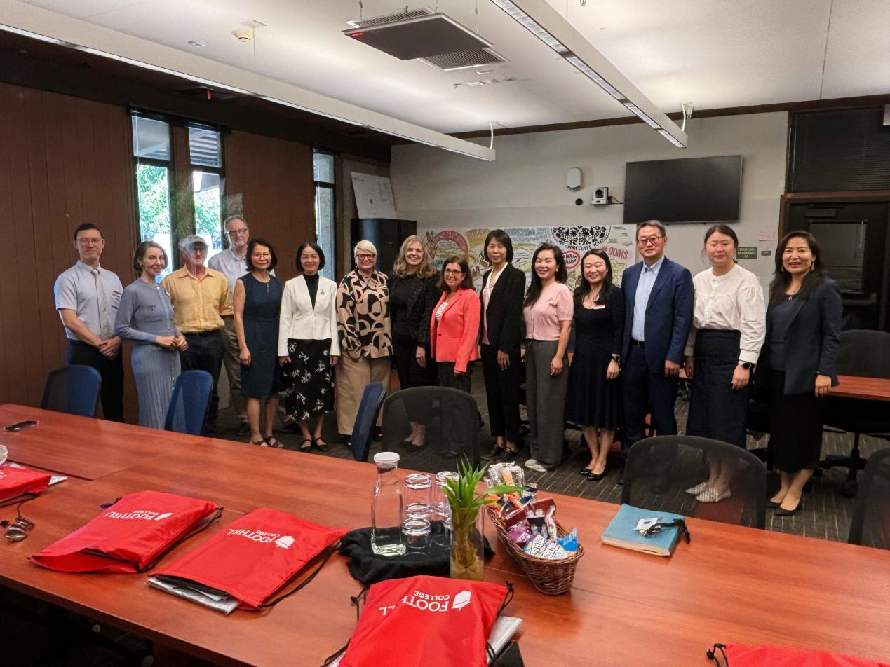在旧金山访问期间,代表团拜访了硅谷发源地的Foothill College,作为全美最好的社区大学之一,校长Kristina Whalen介绍了学校的特色:凭借与加州多所高等院校的学分转换合作优势,成为学生升学名校的重要“跳板”。代表团通过座谈与实地考察,系统了解该校办学特色、学科布局及人才培养模式;双方围绕合作方向深入磋商,初步达成暑期学校联合共建、探索等合作意向,为金沙官网学生搭建更灵活、更广阔的学习与升学通道。之后访问旧金山大学时,代表团受到了旧金山大学亚太创新与管理研究中心主任杨小华教授及团队的热情接待。双方聚焦暑期学校联合运营、国际学术会议共办、体育项目交流、师生联合培养四大核心议题,逐项梳理合作细节、明确推进路径。此次会谈进一步细化了两校国际化合作内容,为后续合作项目高效落地、提升合作实效奠定了坚实基础。