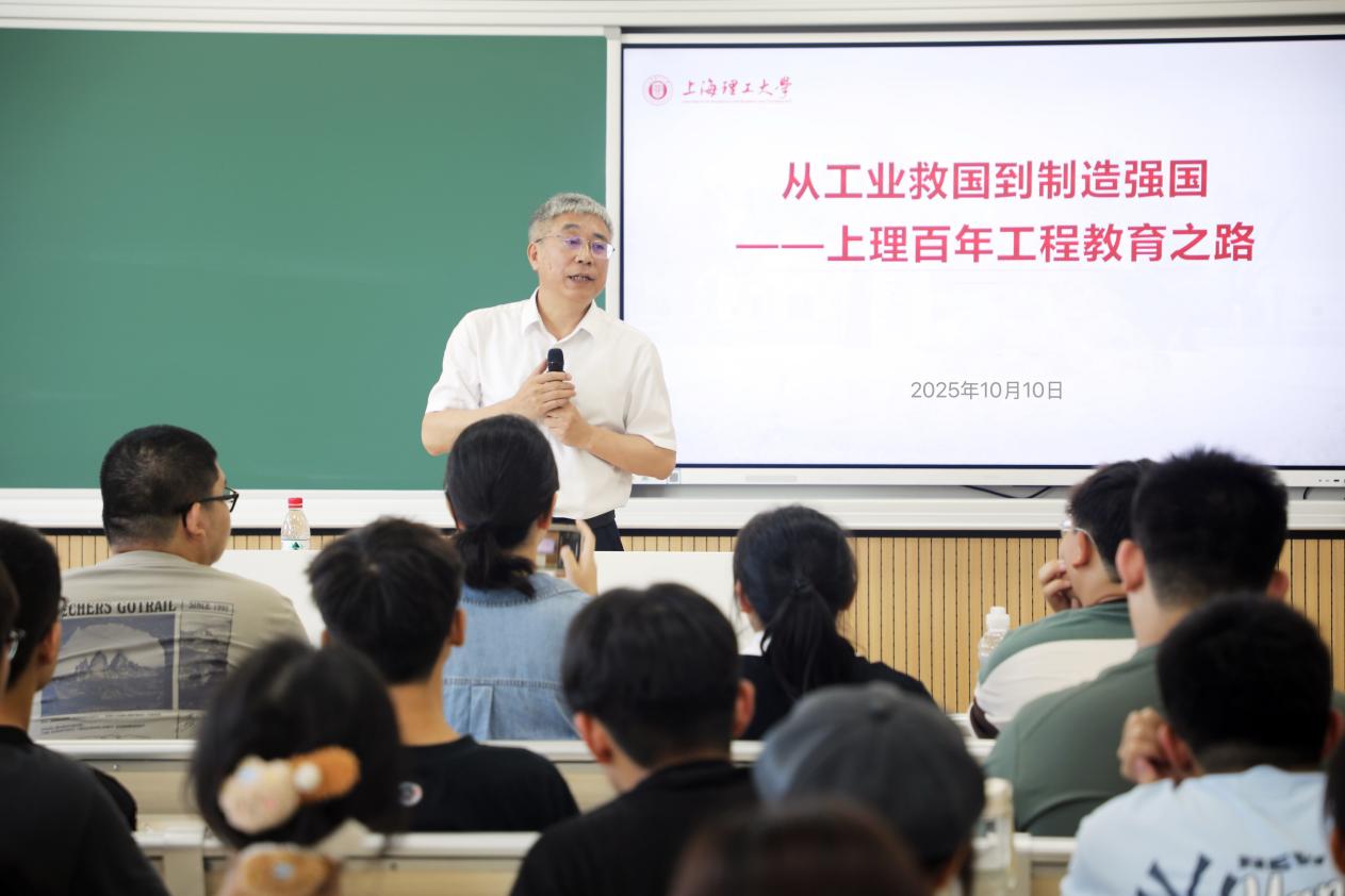 “我们的工程教育,要超越知识的传授,走向思维的塑造;不仅在于解题能力的培养,更在于引导学子建立宏大的视野,深刻理解工程技术的演进以及全球格局的变迁,最终内化为一种深刻的工程文化素养。”10月10日下午,学校党委书记王凌宇以《上理工百年工程教育史》为题,为同学们带来了一场融合校史传承与时代使命的精彩课堂。王凌宇从百年变局与数字社会的崛起讲起,生动梳理了中国从近代民族工业的艰难起步逐步走向制造大国、制造强国的清晰脉络,引导学生在历史的纵深中理解工程教育的初心与使命。