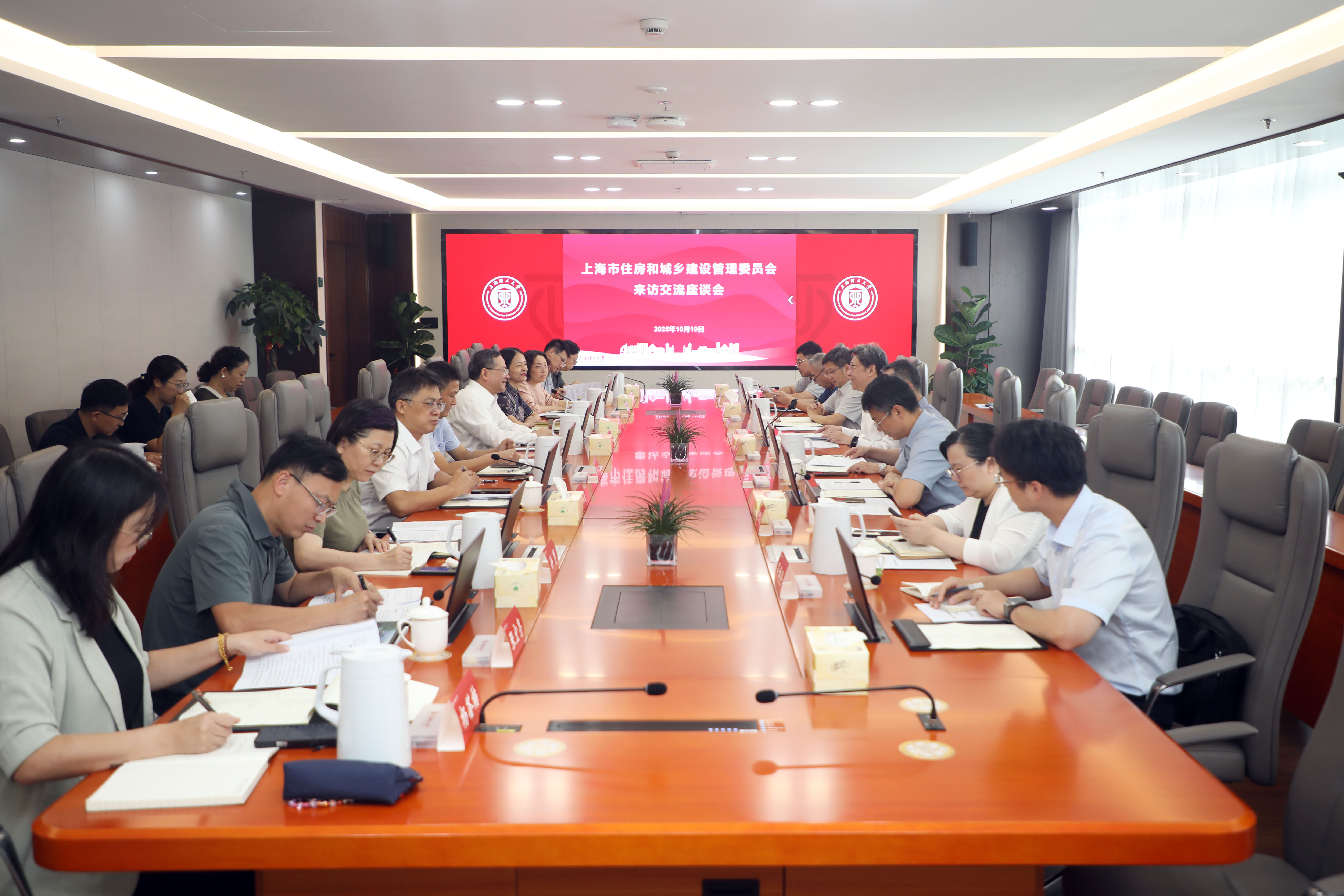 10月10日上午,上海市住房和城乡建设管理委员会总工程师刘千伟率队来访,上理工校长朱新远会见刘千伟一行并参加座谈交流。学校相关部门负责人参加交流。座谈会由副校长蔡永莲主持。