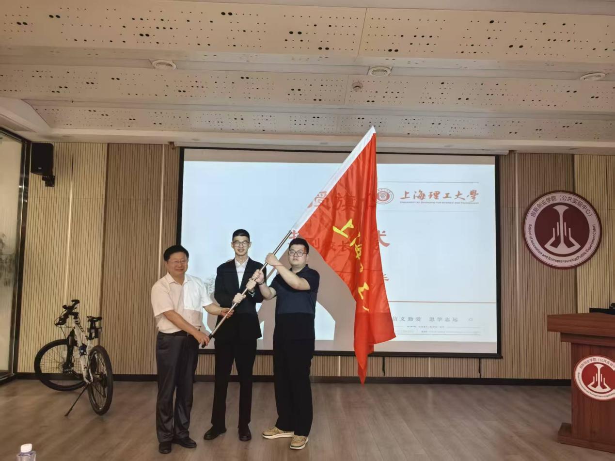 张华为即将出征总决赛的参赛团队授旗,鼓励他们发扬不畏艰难、勇于挑战的精神,勇攀科技创新的高峰,力争在激烈的竞争中脱颖而出,再创佳绩,为学校争光添彩。