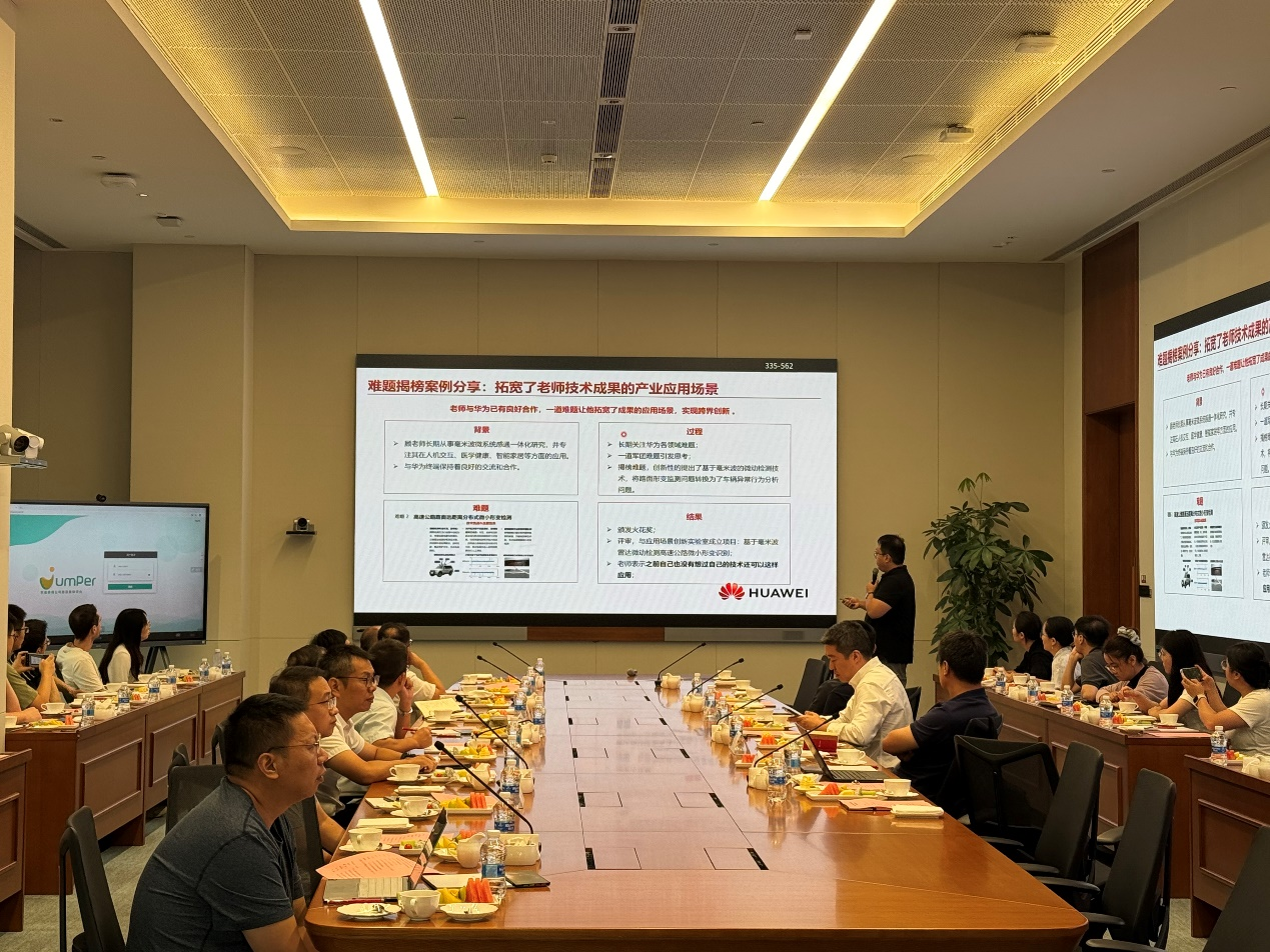 在专题研讨环节,华为上海研究所副所长熊张亮、高校系统部技术合作经理李游就华为研发中心总体情况进行了介绍;华为光产品线技术规划专家卓峰、孙术乾围绕华为光产品线的技术规划与当前面临的技术挑战作了专题报告。自由讨论过程中,双方围绕人才培养联动以及光通讯、光存储和高性能计算等前沿领域展开了探讨。贺莉、顾敏和熊张亮等分别讲话,共同表示将在现有合作基础上加强协同创新,聚焦研究成果转化与产业需求衔接,整合高校科研优势与企业产业资源,携手推动人工智能等领域的创新发展与人才培养交流,为行业进步与国家科技自立自强贡献更大力量。