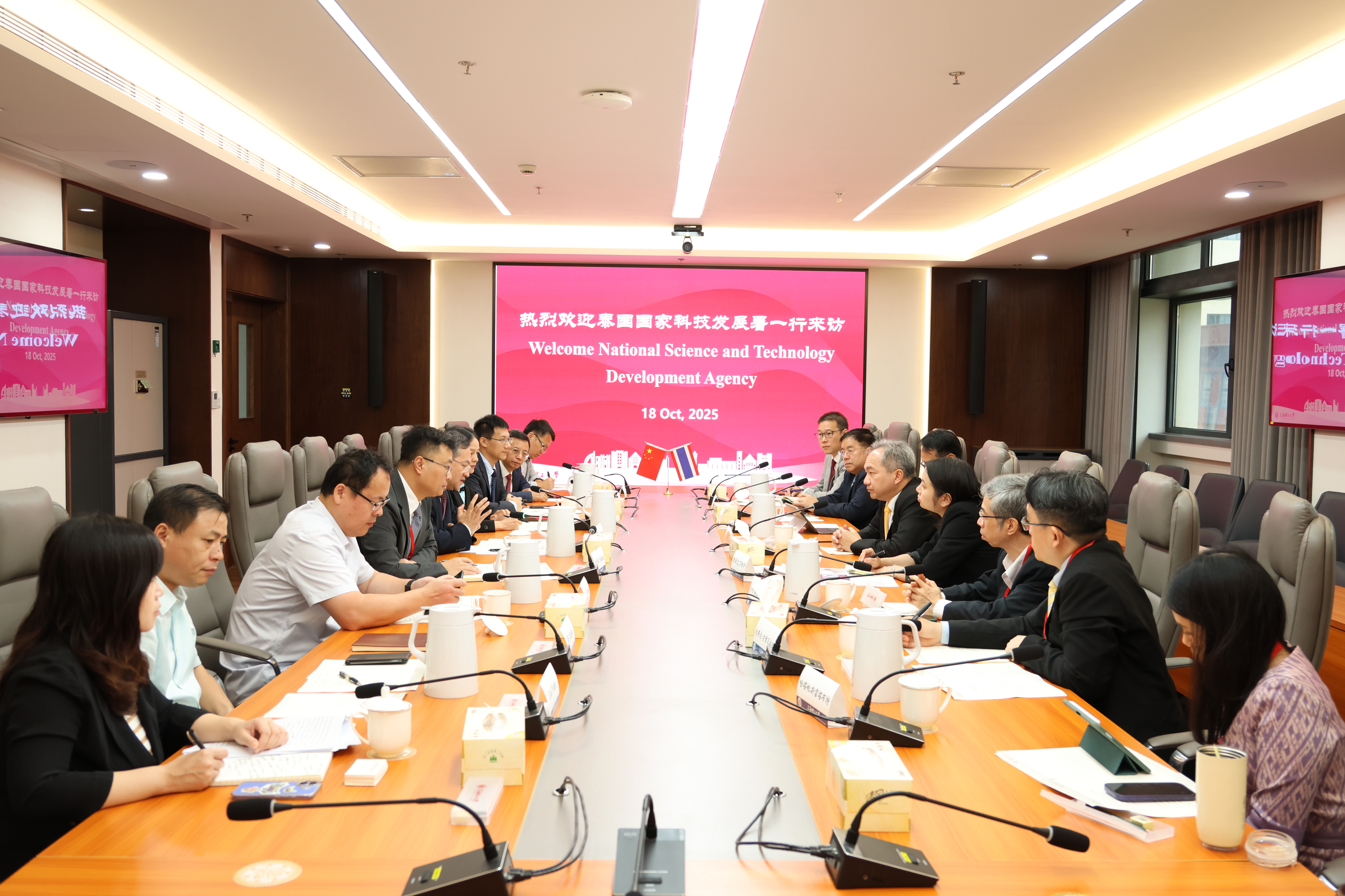 10月18日上午,泰国国家科技发展署署长素吉·茵蓬暖(Sukit Limpijumnong)一行八人来访。上理工校长朱新远、副校长蔡永莲会见了来宾。学校党政办、国交处、健康学院等相关负责人陪同参会。会议由蔡永莲主持。