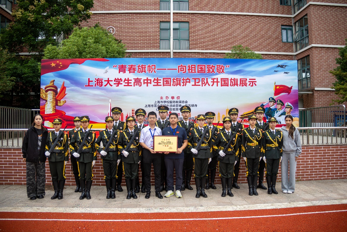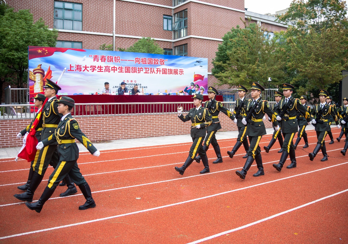 为纪念中国人民抗日战争暨世界反法西斯战争胜利80周年,庆祝中华人民共和国成立76周年,10月18日,由上海市学校国防教育协会、上海市青少年校外活动营地——东方绿舟(上海市国防教育中心)主办,华东理工大学附属闵行科技高级中学、上海市学校国防教育协会高校分会·高中分会·中职分会承办的“上海市大学生高中生国旗护卫队升国旗展示竞赛活动”在闵行科技高级中学校园隆重举行。来自全市的30支高校与中学国旗护卫队齐聚一堂,以庄严的仪式和饱满的精神,呈现了一场别开生面的升旗展示盛会。