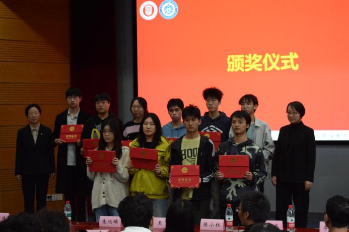 斯麟奖学金颁奖环节,缪煜清宣读2024-2025学年斯麟奖学金获奖名单。朱欣娣、王杨共同为获奖学生颁奖。