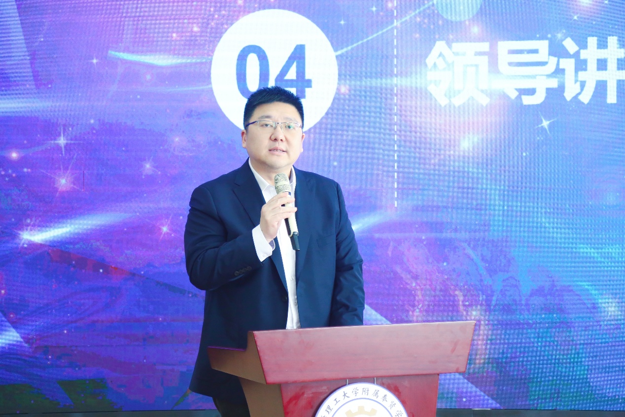 揭牌仪式上,上理工附属奉贤学校校长汤连华致欢迎辞。她回顾了学校悠久的发展历程,全面展示了学校的育人成果与所获荣誉,并直面学校发展所面临的挑战与未来愿景。她表示,学校将继续引导全体师生弘扬“泰和日新”的校训精神,厚植教育情怀,努力将学校办成让党放心、让人民满意、让师生喜爱的家门口好学校。她相信,在各级政府的关怀重视下和9001cc金沙以诚为本的指导帮助下,上理工附属奉贤学校一定能够在新的赛道跑出新的速度,创造新的辉煌。