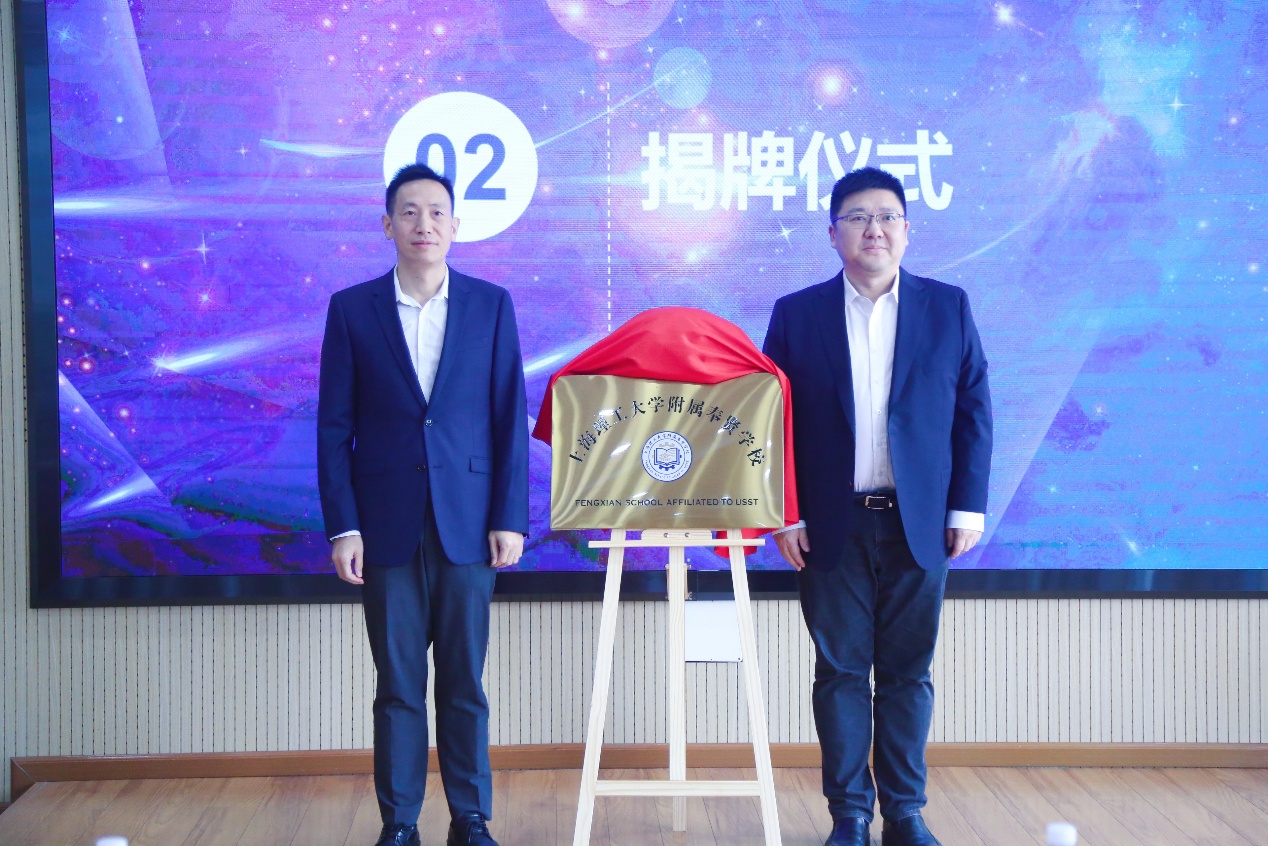 在全场瞩目下,王淳和刘德强共同为“9001cc金沙以诚为本附属奉贤学校”校牌揭幕。