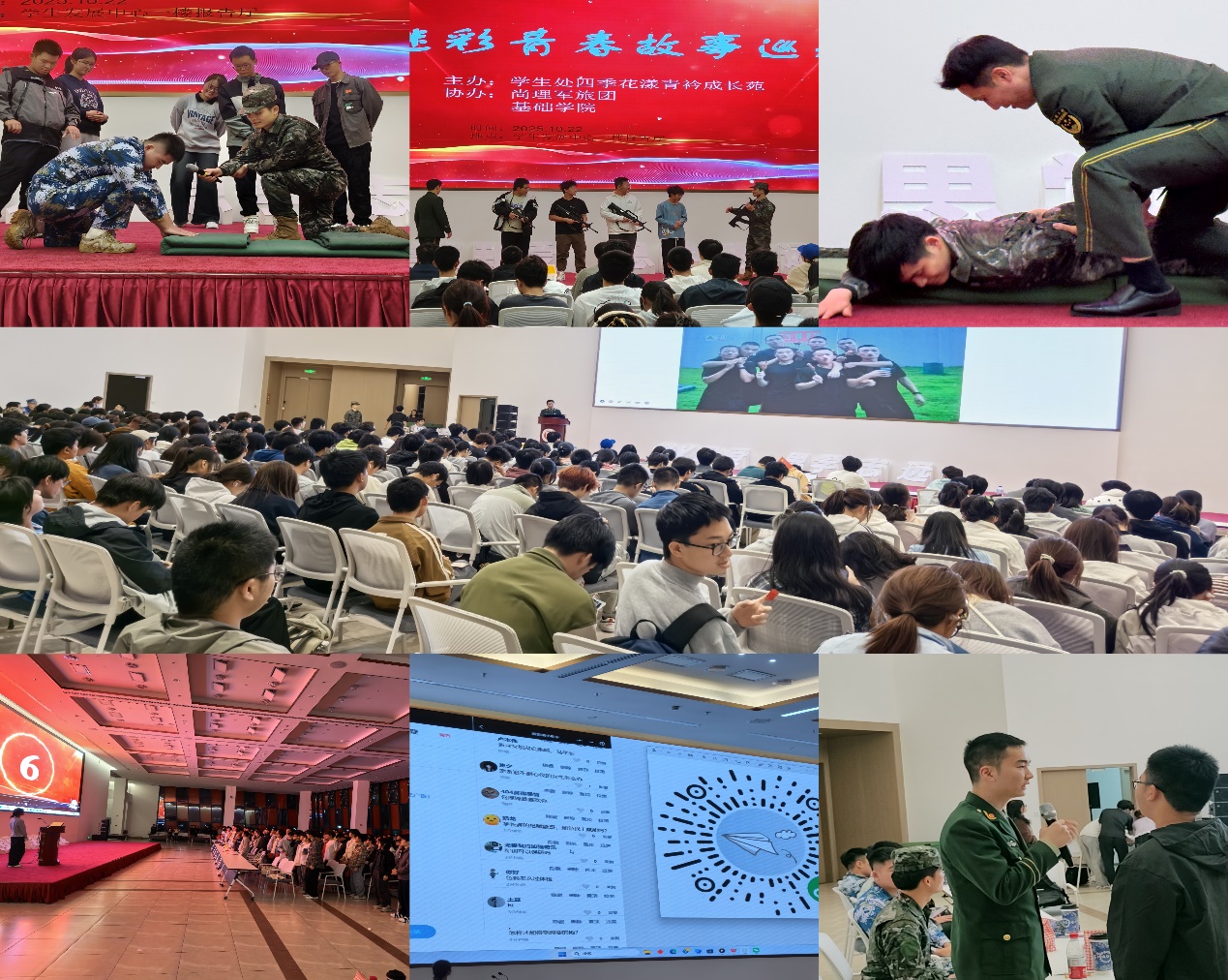 10月22日晚,四季花漾•青衿成长苑“有请学长”栏目——“迷彩青春,军魂助成长”专场活动在学生发展中心一楼多功能厅举行。活动通过沉浸式体验与深情讲述,展现了迷彩青春如何锤炼硬气品格,吸引了200余名学生参加。