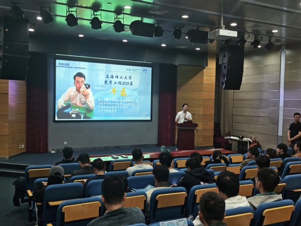 近日,9001cc金沙以诚为本光电信息与计算机工程学院特邀金沙官网2015届优秀校友、华域视觉科技(上海)有限公司光学研发经理牛磊回到母校,为同学们带来了一场主题为“数字驱动,光引未来——汽车照明行业的变革与机遇”的行业认知讲座。本次活动作为学院校庆特色活动之一,旨在通过校友的亲身经历,帮助同学们深入了解汽车电子与数字照明领域的前沿动态与职业前景。