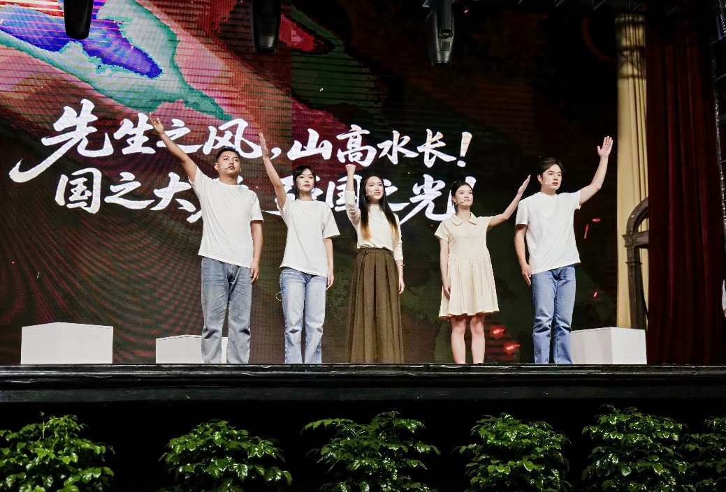 演出结束后,四任刘湛恩扮演者实现了"跨时空同台",共同站在大礼堂舞台上合影留念。