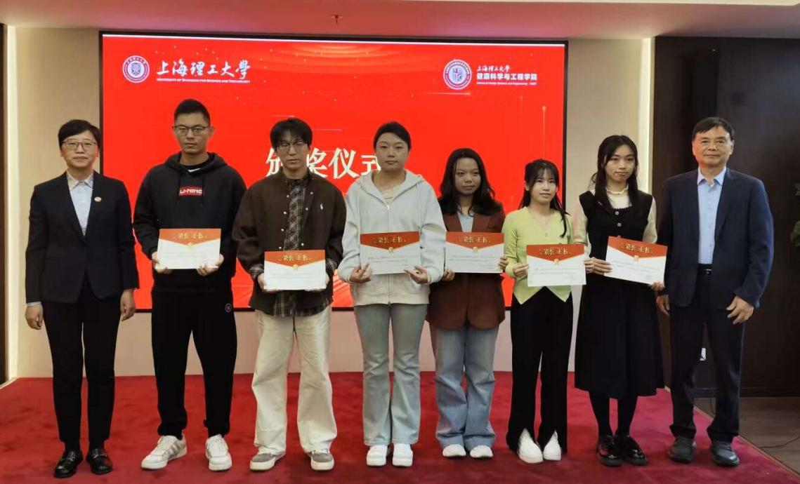 姚秀雯宣读获奖学生名单,贺莉、瞿建国为获“建国奖学金”的研究生代表颁发获奖证书,方亚鹏、司徒唯尔为获“建国奖学金”本科生代表颁发获奖证书。获奖学生代表2023级生物医学工程专业研究生李溱溱发言。