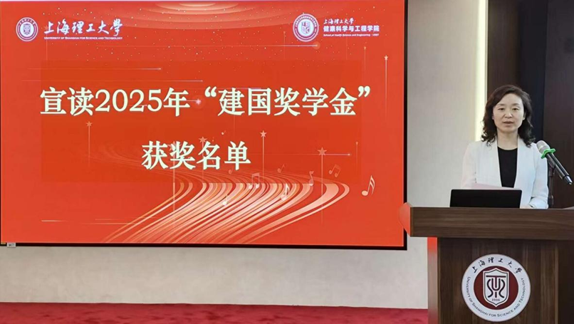 贺莉代表学校对瞿建国先生及建国社会公益基金会对学校教育事业的关心和支持表示感谢。她强调,高端医疗器械设备国产化、食品安全保障等事关人民健康的领域和行业,迫切需要高素质专业人才。学校把以医疗器械为特色的健康领域人才培养作为新一轮综合改革的六大领域之首,体现了主动服务国家战略、回应人民期待的责任担当。建国奖学金对健康领域人才培养的激励和支持,不仅为有志于深耕这一领域的上理学子提供激励,更与学校人才培养目标高度契合。她对获奖同学提出了三点希望:一是永怀感恩之心,以瞿建国先生为榜样,传承弘扬好“乐于奉献、回馈社会”的精神;二是刻苦学习、潜心钻研,为破解行业难题积蓄力量,贡献“健康中国”建设的青年力量;三是把个人理想融入国家发展大局,在医疗器械创新、食品安全保障等领域勇于挑战,让青春在守护人民健康的实践中绽放光彩。