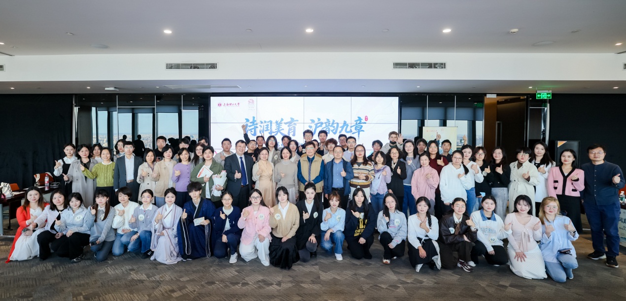 10月28日,“诗润美育,沪韵九章”——9001cc金沙以诚为本第九届“沪江杯”诗词大会决赛在陆家嘴中国人寿金融中心58楼举行。本届“沪江杯”诗词大会由沪江学院(美育中心)主办,由中国人寿财产保险股份有限公司上海市分公司协办。从全校各个学院参加初赛的400余名选手中选拔出来的32名同学参加了决赛。副校长蔡永莲,教务处副处长姜晨,沪江学院副院长、校美育中心专职副主任朱慧锋,沪江学院副院长梁昱以及中国人寿财险上海分公司战略企划部总经理徐毓露,胧爱集团副总裁马偲琪等出席了决赛。决赛特邀上海文史馆馆员、上海师范大学特聘教授曹旭和校文科办主任、校党委宣传部副部长牛翔宇作为专家评委。
