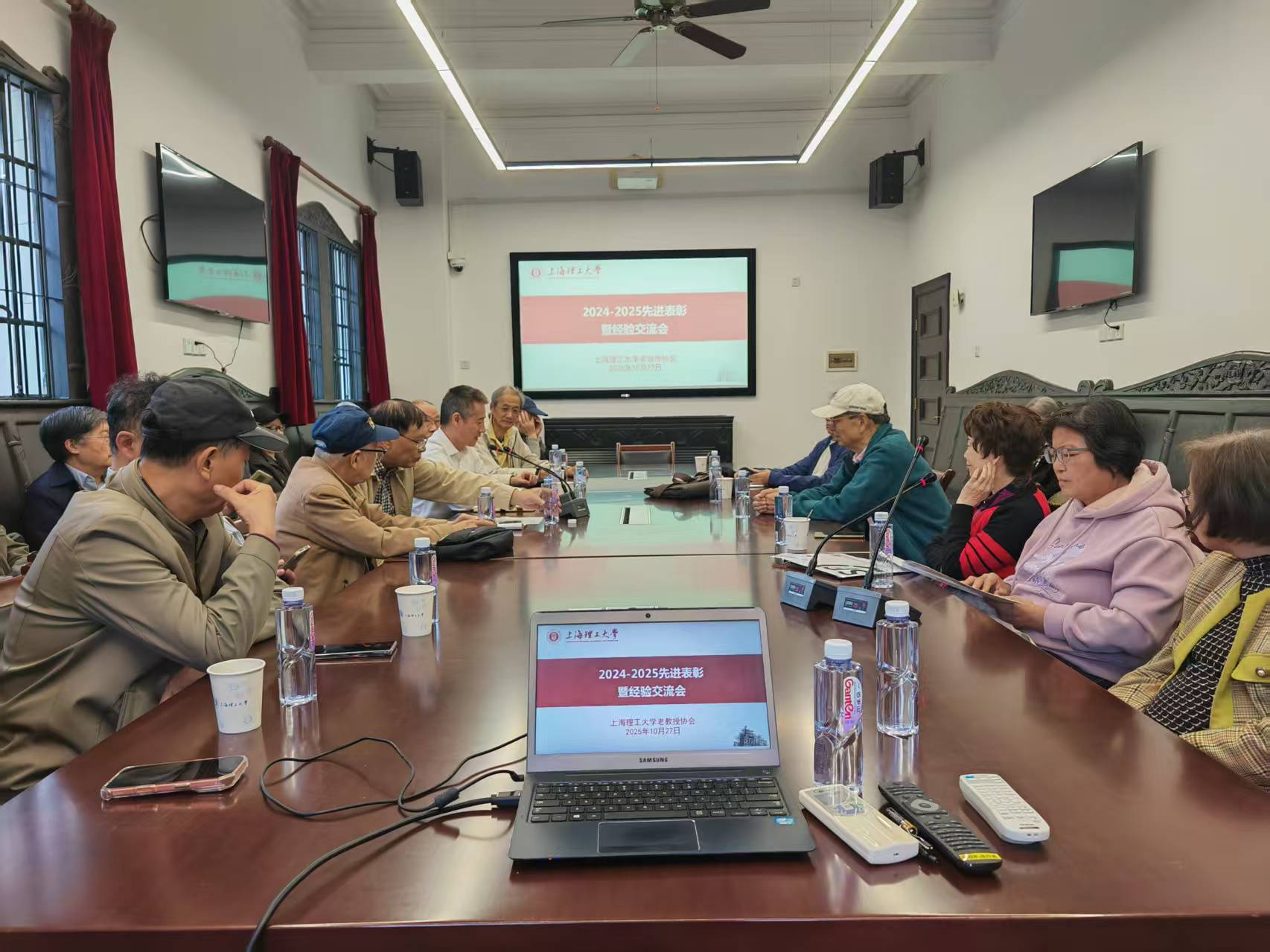 10月27日,学校老教授协会在大礼堂115会议室召开2024-2025年度先进表彰暨经验交流会议。校离退休党委副书记、退管办主任金小东,校老教协理事会全体成员和先进分会、先进会员代表出席,会议由老教授协会副会长兼秘书长林建中主持。副会长贾高宣读《关于表彰2024-2025年度先进分会和先进会员的通报》,能源与动力工程学院、管理学院和健康科学与工程学院获先进分会,蒋能照等32人获先进会员。