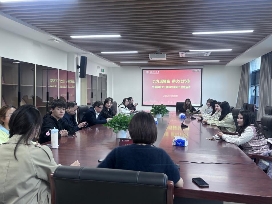 在重阳佳节来临之际,为弘扬中华民族敬老爱老的优良传统,促进代际沟通与精神传承,10月29日下午,外语学院关心下一代工作委员会(以下简称“关工委”)在外语学院306会议室开展了以“九九话登高,薪火代代传”为主题的重阳节师生座谈活动。学院关工委多位老教师与青年学生代表齐聚一堂,共话人生感悟,同叙师生情谊。