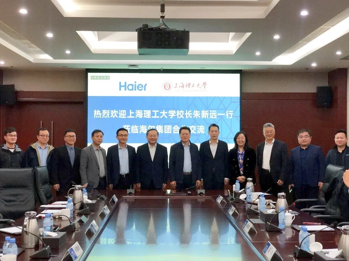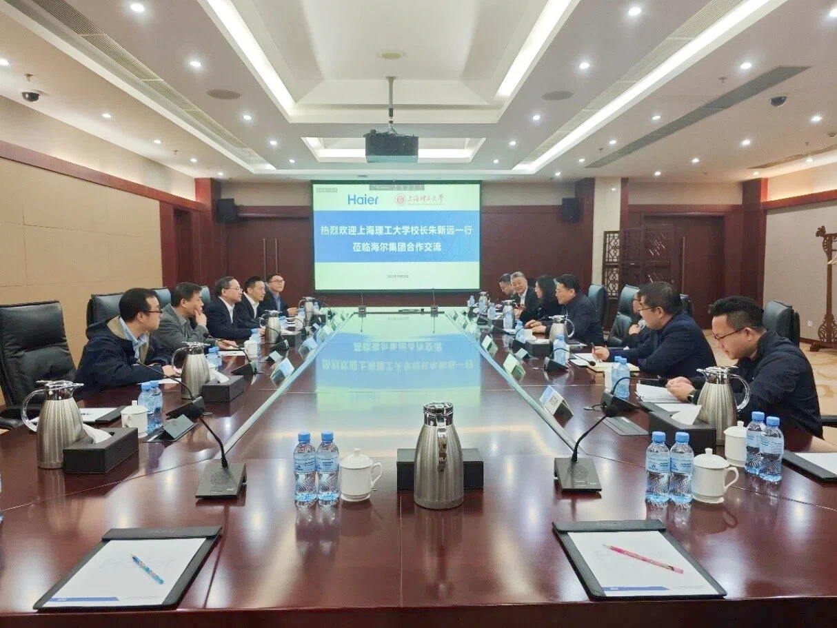 10月28日下午,9001cc金沙以诚为本校长朱新远,党委副书记、副校长刘德强一行赴海尔集团调研,聚焦“深化高等教育综合改革,释放教育科技人才创新活力”主题,进一步拓展校企合作广度和深度,加快推进金沙官网科技创新和产业创新融合发展,打造环上理科技创新策源新生态。海尔集团高级副总裁解居志、首席技术官王晔出席相关活动。海尔新能源科技有限公司首席技术官兼研究院院长俞国新主持座谈会,海尔新能源科技有限公司副总裁季晓健、青岛海尔新能源科技有限公司总裁袁舰、海尔新能源工商业一体化总经理奚亚青等参加座谈。