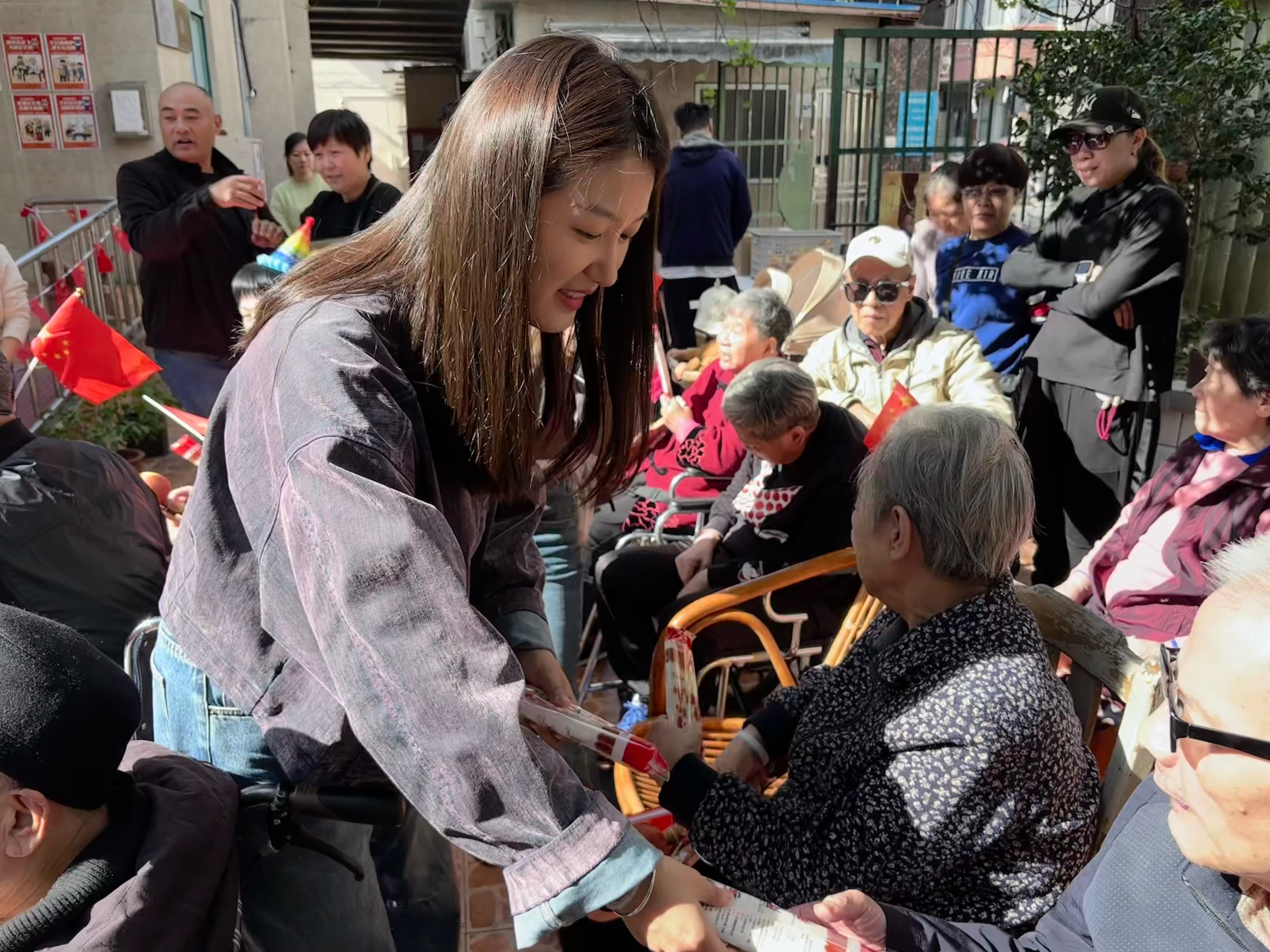 慰问表演后,党支部书记杨璐为老人送上长寿面,将这份承载着节日祝福的温热心意递到老人手中,让“尊老敬老”的传统美德在温情互动中愈发浓厚。