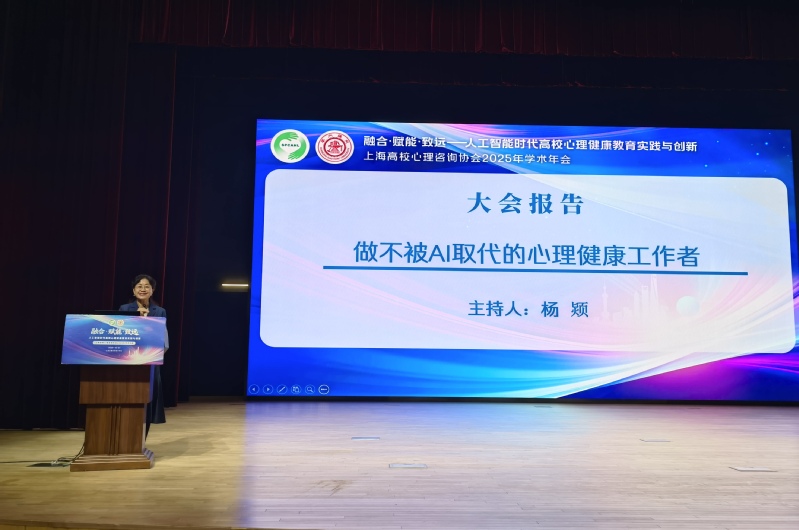 会上,中国人民大学社会与人口学院教授、博士生导师、心理健康教育跨学科平台首席专家俞国良,作了《大学生心理健康问题的时代诠释》的报告。医学博士、世界心理治疗学会主席、知名心理学专家赵旭东教授以《做不被AI取代的心理健康工作者》为题,分享了其深刻洞见。全国高校思政网、中国大学生在线心理健康工作部副主任郑骊君则围绕《数字赋能新时代高校心理健康工作质效提升》进行了阐述。三场主旨报告视角多元,内容前沿,引发与会者的热烈反响。上海高校心理咨询协会常务副理事长兼法人代表、金沙官网心理中心主任杨颎老师应邀担任主旨报告主持人。