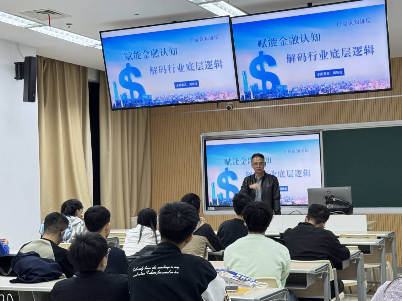 为进一步发挥学科优势、提升职业竞争力,理学院精心打造“数理π途”行业认知讲坛。11月5日晚,学院于卓越楼237教室举办“赋能金融认知 —— 解码行业底层逻辑” 专场讲座,特邀2007届数学与金融数学专业校友周铁俊担任主讲,为理学院学子们深度解析金融行业发展脉络与职业路径,赋能金融领域就业竞争力提升。