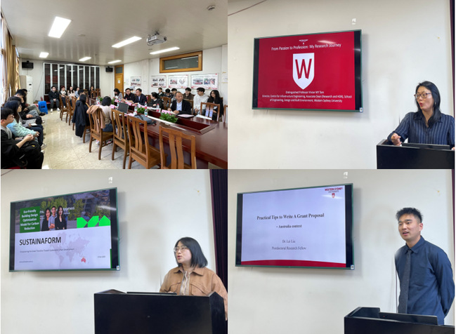接下来的专家报告环节,谭颖恩教授以“On net zero(关于净零碳)”为题,分享了在可持续建筑与净零碳排放领域的前沿研究成果,并重点解读了“二氧化碳混凝土”的推广应用,介绍了其主持的澳大利亚政府科技项目NOBEL,指明了以全生命周期碳排放为基准的土木行业发展方向,为在座师生提供了宝贵的学术启示。紧接着,新西兰梅西大学周义君博士以“科研与国际大赛”为主题,分享了如何将科研成果与国际竞赛相结合,拓展学术视野与实践平台。最后,西悉尼大学刘磊博士以“写项目申请书的实用技巧”为题,结合自身在读博期间成功获批三项科技项目的经验,详细讲解了项目申请书撰写的关键要点与实用策略。