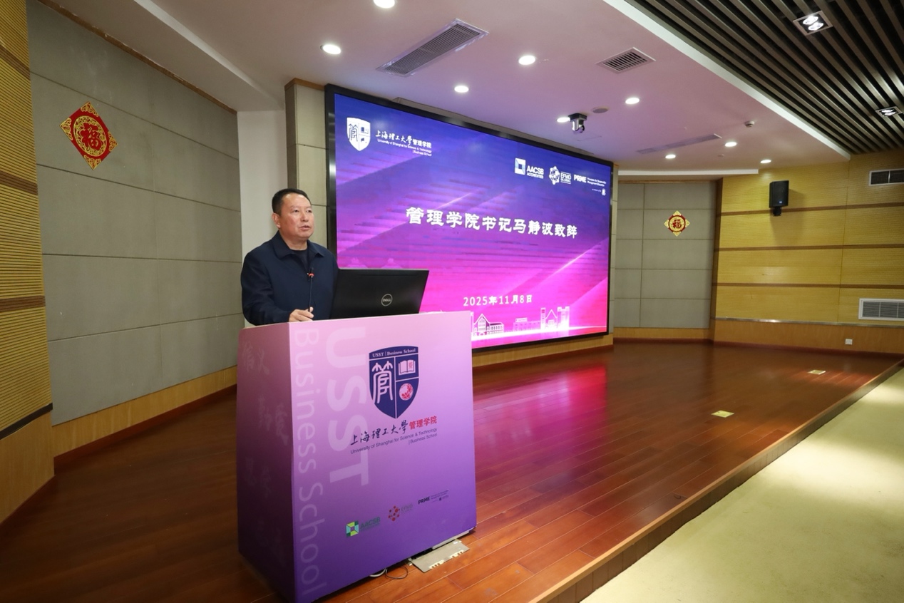 马静波代表管理学院对各位领导、嘉宾的到来表示热烈欢迎,并向长期支持学院建设与发展的各方力量表示诚挚感谢。他指出,设立“人工智能+系统管理”创新班,是学院响应国家新工科、新商科建设号召的重要举措,也是推动学科交叉融合、创新人才培养模式的关键实践。