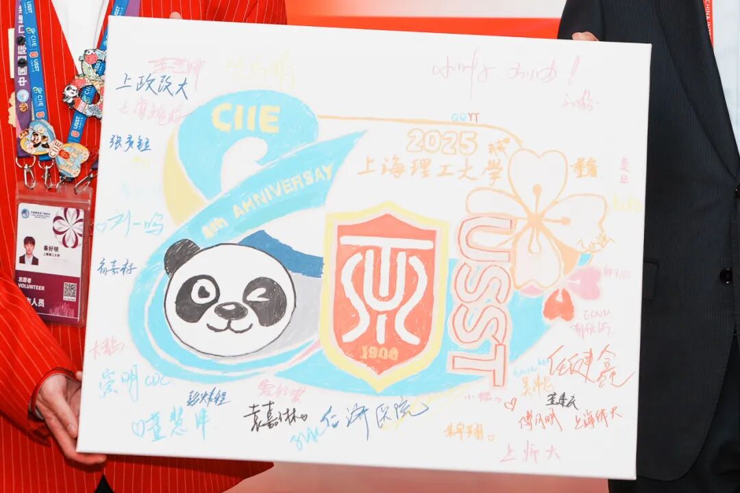 在轻松温馨的氛围中,刘德强与志愿者代表共同绘制了一幅以“开放·创新”为主题的共创画卷,表达对进博会的美好祝愿。一位参与绘制的志愿者表示:“每一笔色彩不仅凝聚了我们对进博会的祝福,也承载着与学校并肩同行的深情。”随后,刘德强为志愿者们送上定制蛋糕,并以“奉献的青春最甜”的暖心寄语,为连日辛勤服务的“小叶子”们送上鼓励与慰问。