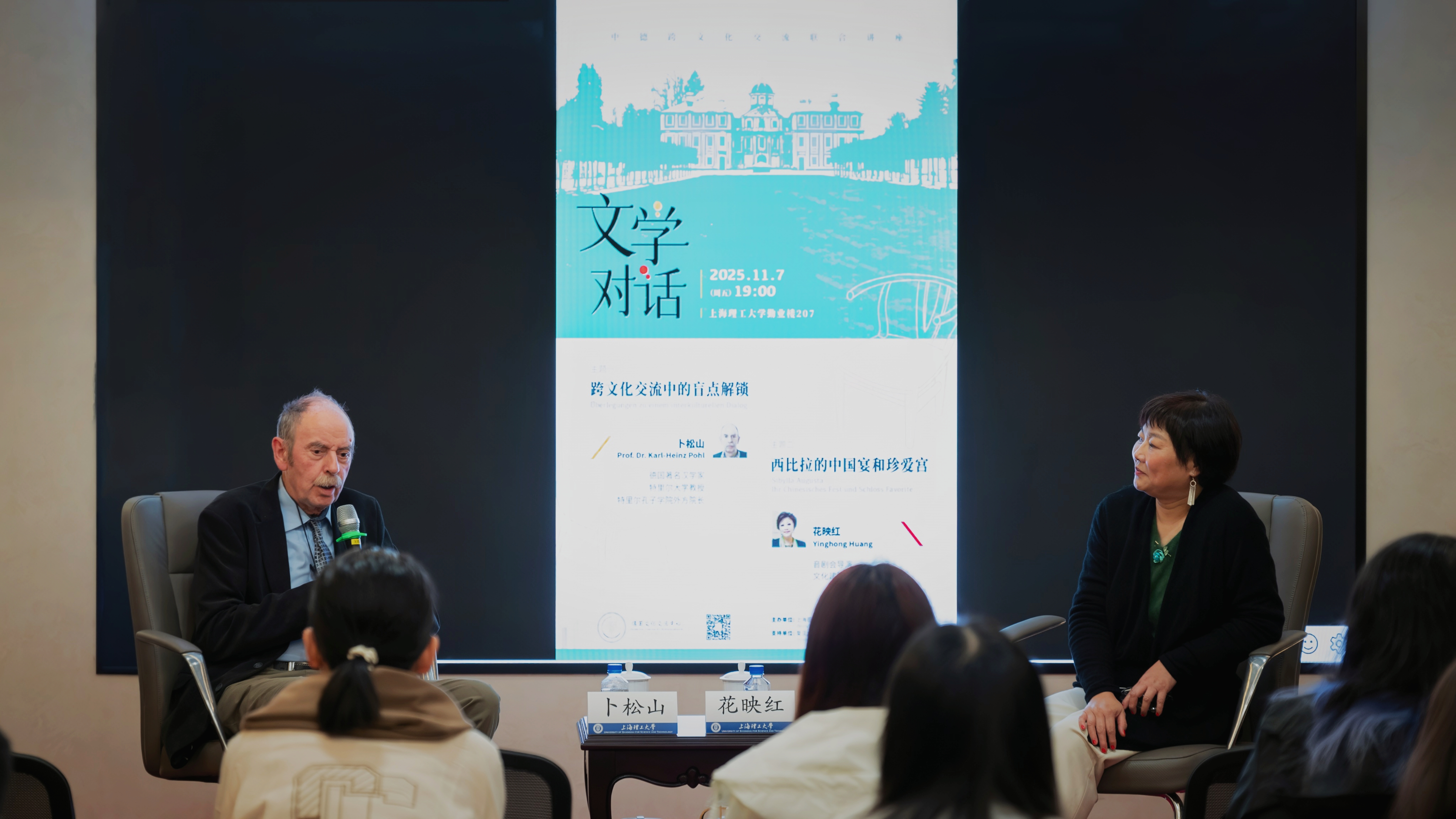 11月7日,一场以“文学对话——中德跨文化交流”为主题的联合讲座在9001cc金沙以诚为本德国文化交流中心成功举办。本次活动由9001cc金沙以诚为本国际交流处德国文化交流中心主办,得到了复旦大学德国校友会的大力支持,吸引了众多师生及中外文化爱好者参加。活动邀请到德国著名汉学家、特里尔大学孔子学院德方院长卜松山教授(Prof. Dr. Karl-Heinz Pohl)与著名导演、文化建筑出品人花映红女士,两位嘉宾以不同视角展开思想碰撞,共同探讨文学与文明交流的深层关系。