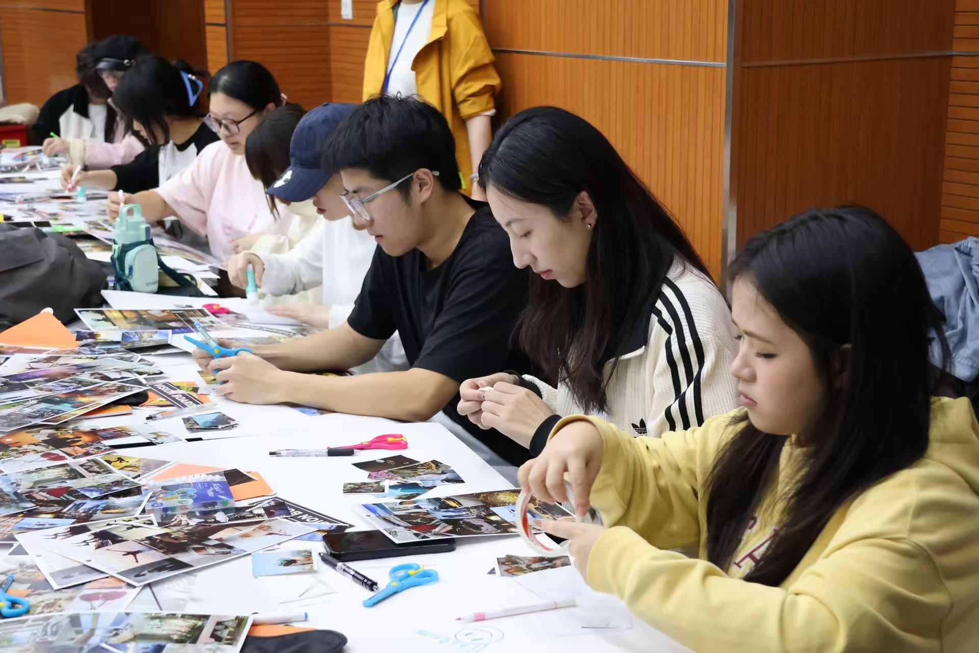 在“设计梦想愿景板”环节,同学们把梦想通过图像、文字进行视觉化呈现,制作成属于自己的梦想蓝图,这些具象化的作品不仅是创意的结晶,更是梦想被唤醒、被点亮的象征。同时“一路同行”体验环节,两人一组,一人蒙眼,一人在旁支持引导,共同穿越障碍抵达“梦想目的地”,生动模拟了在实现梦想的道路上的未知与困难,但同学们并非孤身前行,这也诠释了梦想道路上坚持与协作的重要性。在活动中,来自五湖四海的同学们通过作品介绍、小组讨论、合作任务等环节链接了同频伙伴,相互吸收能量,也营造了“竭力成为梦想行动派,做元气满满的自己”的温暖、积极的氛围。
