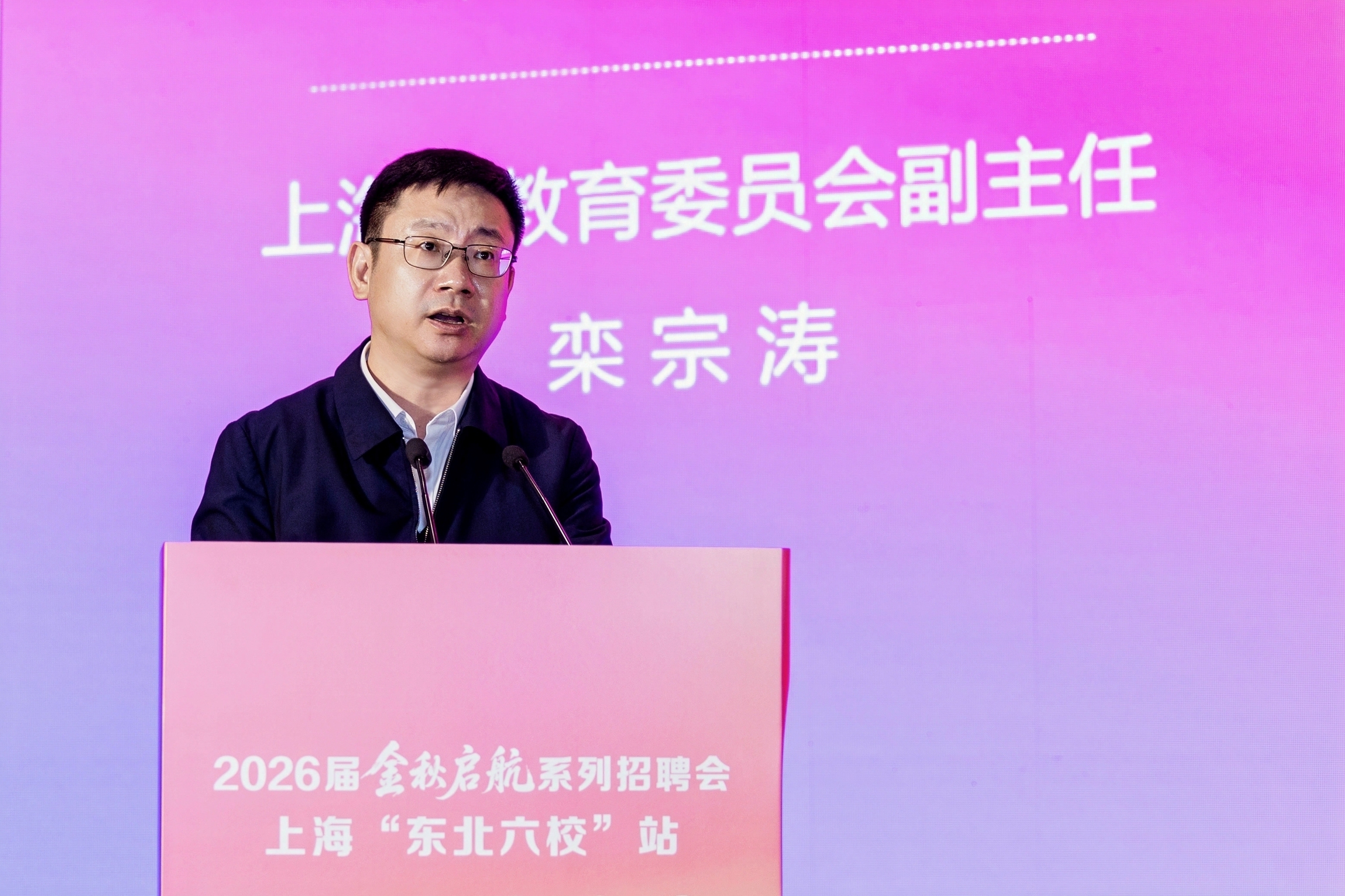 栾宗涛在讲话中高度肯定了本次活动的组织意义和示范效应,代表市教委对各方的大力支持表示感谢。他指出,各高校要把握时代机遇,以高站位谋划就业工作新格局。始终将毕业生就业工作置于服务国家战略、推动城市发展的高度统筹推进;要聚焦产教融合,以高质量供给激活就业新动能。进一步深化教育教学改革,优化专业布局,促进人才培养与产业需求的精准匹配;要坚持育人为本,以全方位服务护航青春新征程。希望广大毕业生树立正确的择业观、就业观,积极投身于国家和社会最需要的岗位。他呼吁更多用人单位厚植社会责任感,为青年才俊提供更广阔的发展平台。他表示,上海市教委将继续会同相关部门,搭建更多像“金秋启航”这样高效、精准的对接平台,全力护航2026届高校毕业生顺利就业、尽早就业、高质量就业。